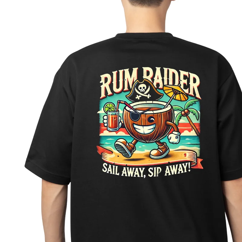 Set sail in style with our Pirate Coconut Rum Graphic Tee! This vibrant black shirt features a bold, full-color print of a pirate coconut rum, complete with a pirate hat, sunny beach backdrop, and refreshing drink accessories. Made from high-quality, soft cotton, this tee is not just stylish but also incredibly comfortable. Whether youre seeking adventure on the high seas or unwinding with a cocktail, our Rum Raider tee is the perfect choice to channel your inner pirate and embrace tropical vibes. Hoist the sails and head towards excitement with this durable shirt in your wardrobe.