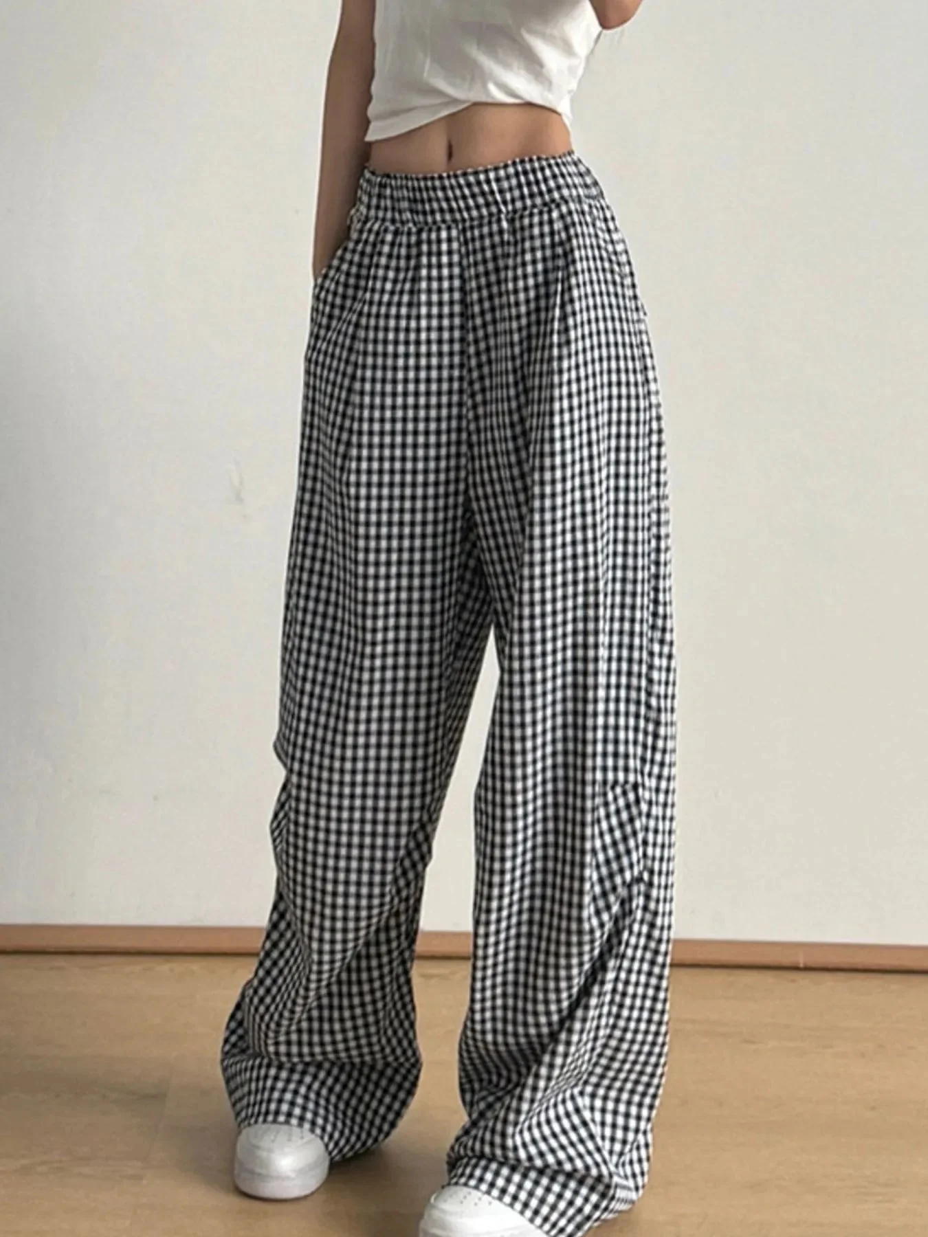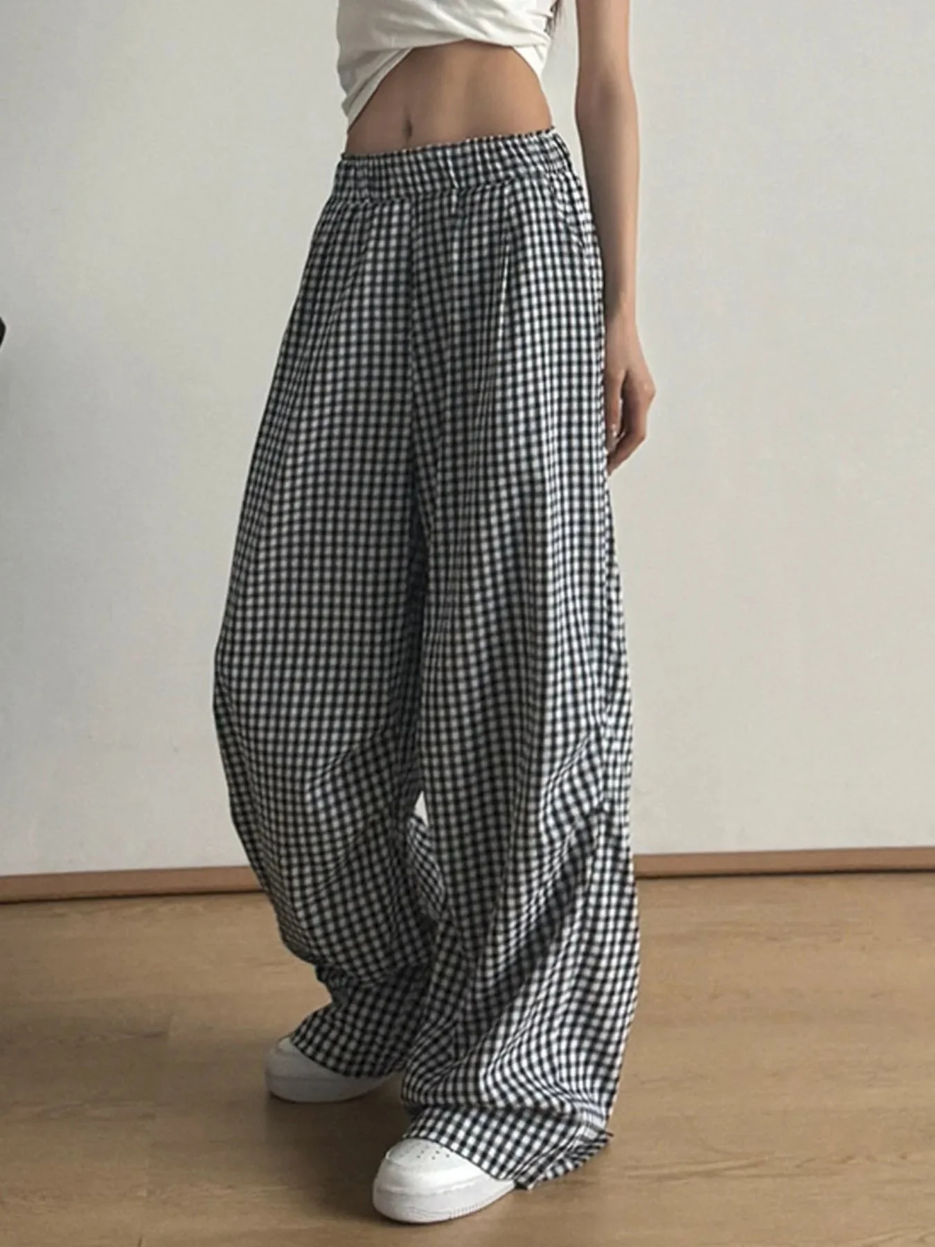 Discover ultimate comfort and style with our Plaid Wide Leg Comfy Pants. Designed with an oversized fit and convenient pockets, these pants are a must-have addition to your wardrobe. Crafted from 100% polyester, these pants are easy to care for with a simple machine wash cold and tumble dry low. Imported for the best quality and style. The wide leg design offers a trendy look, while the gingham check pattern adds a touch of sophistication. Available in black in sizes S, M, L, and XL. Elevate your loungewear collection with these stylish pants!