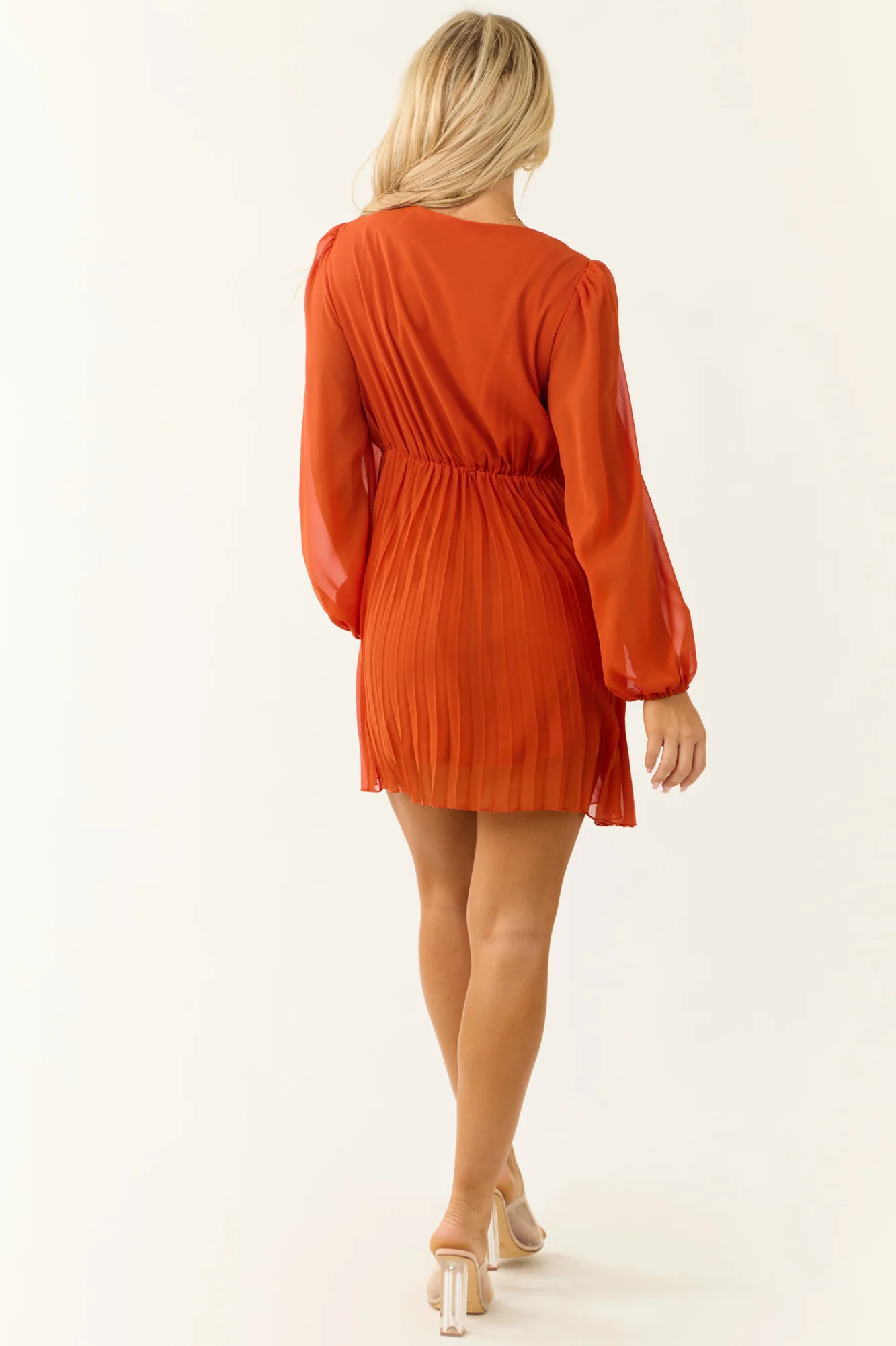 Indulge in elegance with our Pleated Baby Pink Mini Dress, featuring a relaxed fit with an elastic back waistband and cuffs for comfort. This V-neck dress has a snap button closure and a surplice front for a chic look. The sheer puff sleeves, side button detail, and lining add to its charm. Crafted from 100% polyester, its perfect for date nights in fall and winter. Available in sizes Small, Medium, and Large.