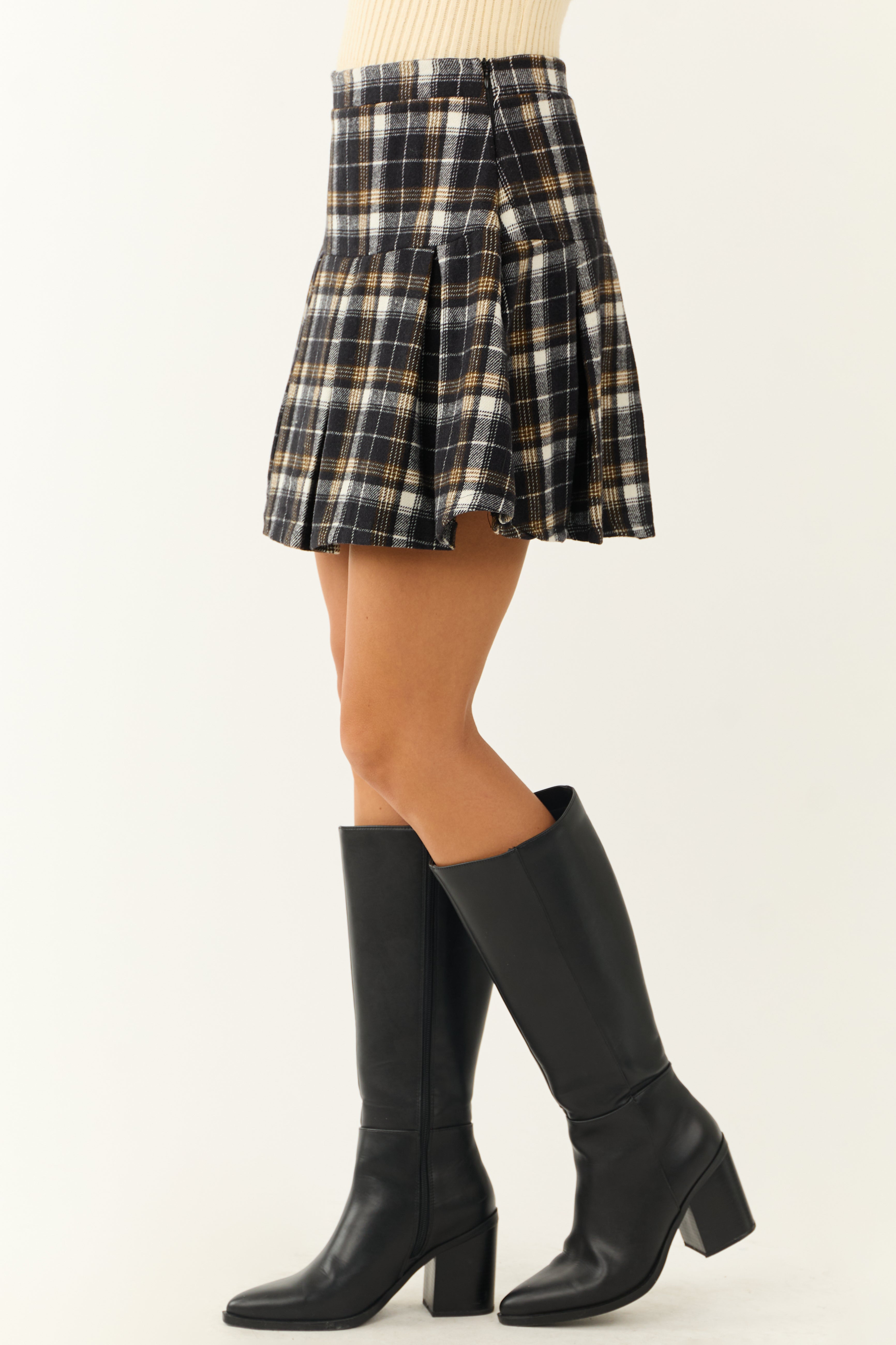 Indulge in the classic charm and versatility of this Pleated Mini Skirt in Black and Peanut Plaid. Crafted from non-stretchy woven fabric with elegant plaid patterns in Black, Ivory, and Peanut hues, this skirt features S, M, L sizes with waist measurements of 28″, 30″, and 32″ respectively. The length varies from 16.5″ to 17.5″, offering a stylish silhouette. Complete with a side zipper for easy wear, both the garment and lining are made of 100% Polyester for premium quality. Hand wash cold, avoid bleach, dry flat, and use a cool iron for care. Feel beautiful and confident wearing this exquisite skirt.