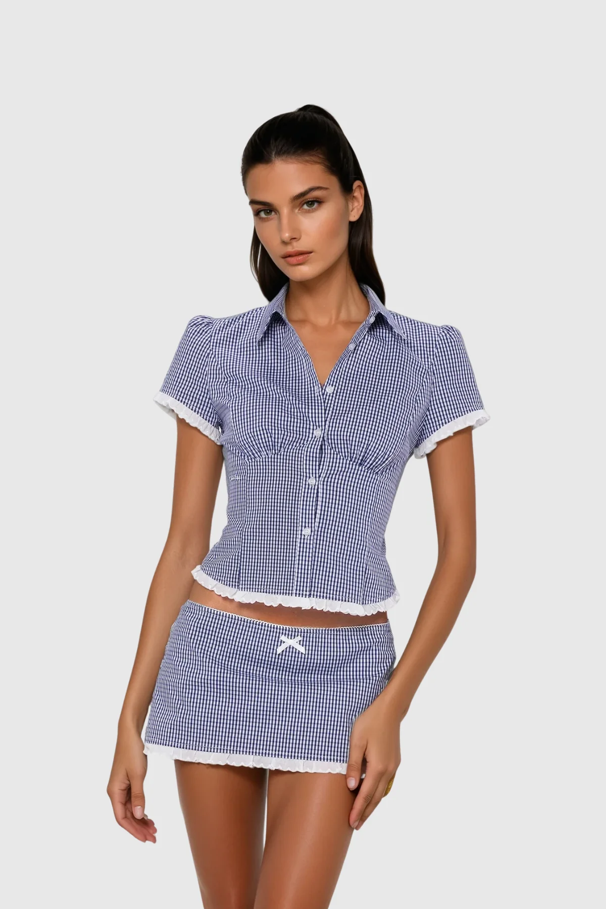 The Polished Grid Pattern Skirt Suit Set merges timeless tailoring with contemporary style, featuring a structured lapel jacket matched with a grid-patterned skirt. Tailored for a sophisticated and professional appearance, this set offers versatility ideal for office attire or elegant gatherings. The grid design adds subtle visual allure while upholding a refined aesthetic, making it a crucial addition to any curated wardrobe. This set is non-stretch and can be gently machine washed. Please note, colors may vary due to image lighting. The product images without models best represent the true product color.