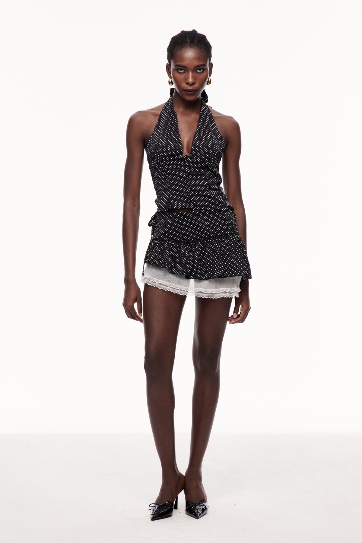 Upgrade your wardrobe with the Polka Dot Halter Neck Skirt Set, a chic ensemble featuring a timeless polka dot design and a modern halter neck style. This set not only complements your figure beautifully but also ensures comfort and sophistication. Whether for casual outings or formal occasions, this versatile set exudes both charm and grace, making you the center of attention with its meticulous craftsmanship. Experience both style and confidence effortlessly. Non-Stretch Fabric. Care: Machine Wash Gentle. Color may vary.