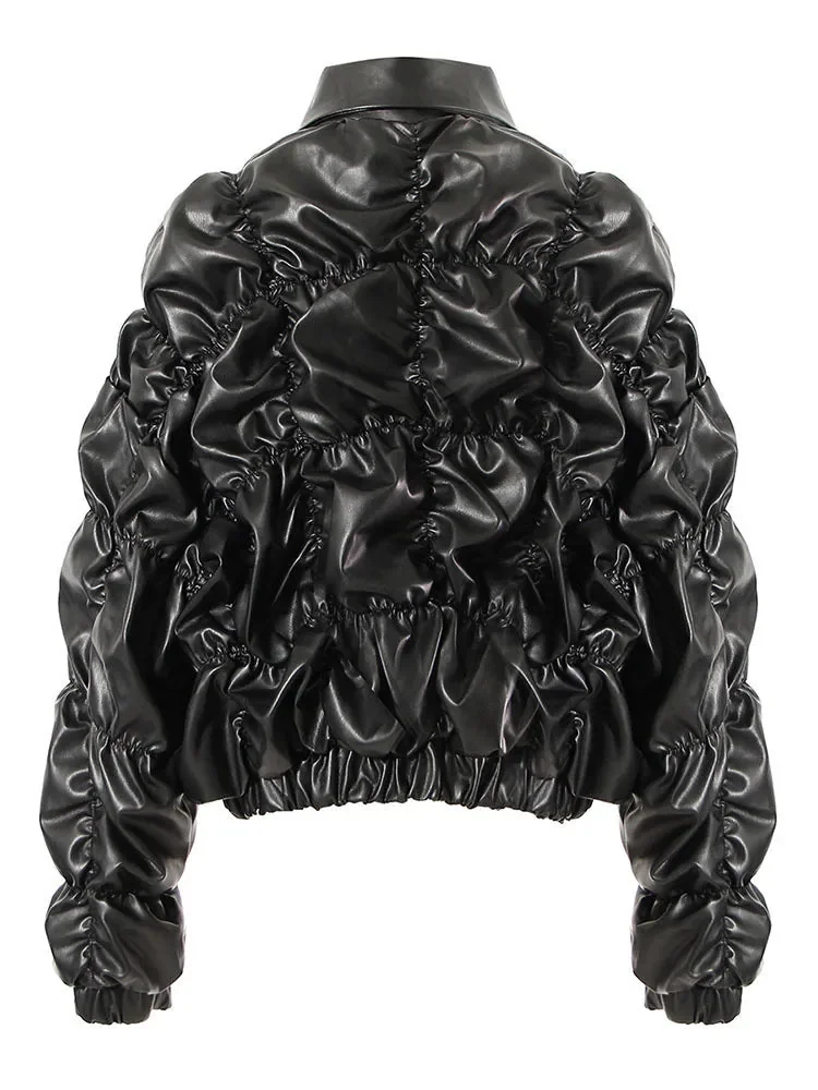 Elevate your style with our Limited Edition Premium PU Leather & Cotton Blend Womens Puffer Jacket. This one-of-a-kind showstopper in black offers exceptional quality and unique details to enhance any outfit. Stay warm and fashionable with sizes ranging to L. Explore our size chart for precise measurements. In The End Cult ensures your satisfaction with every purchase. Contact us anytime for assistance.