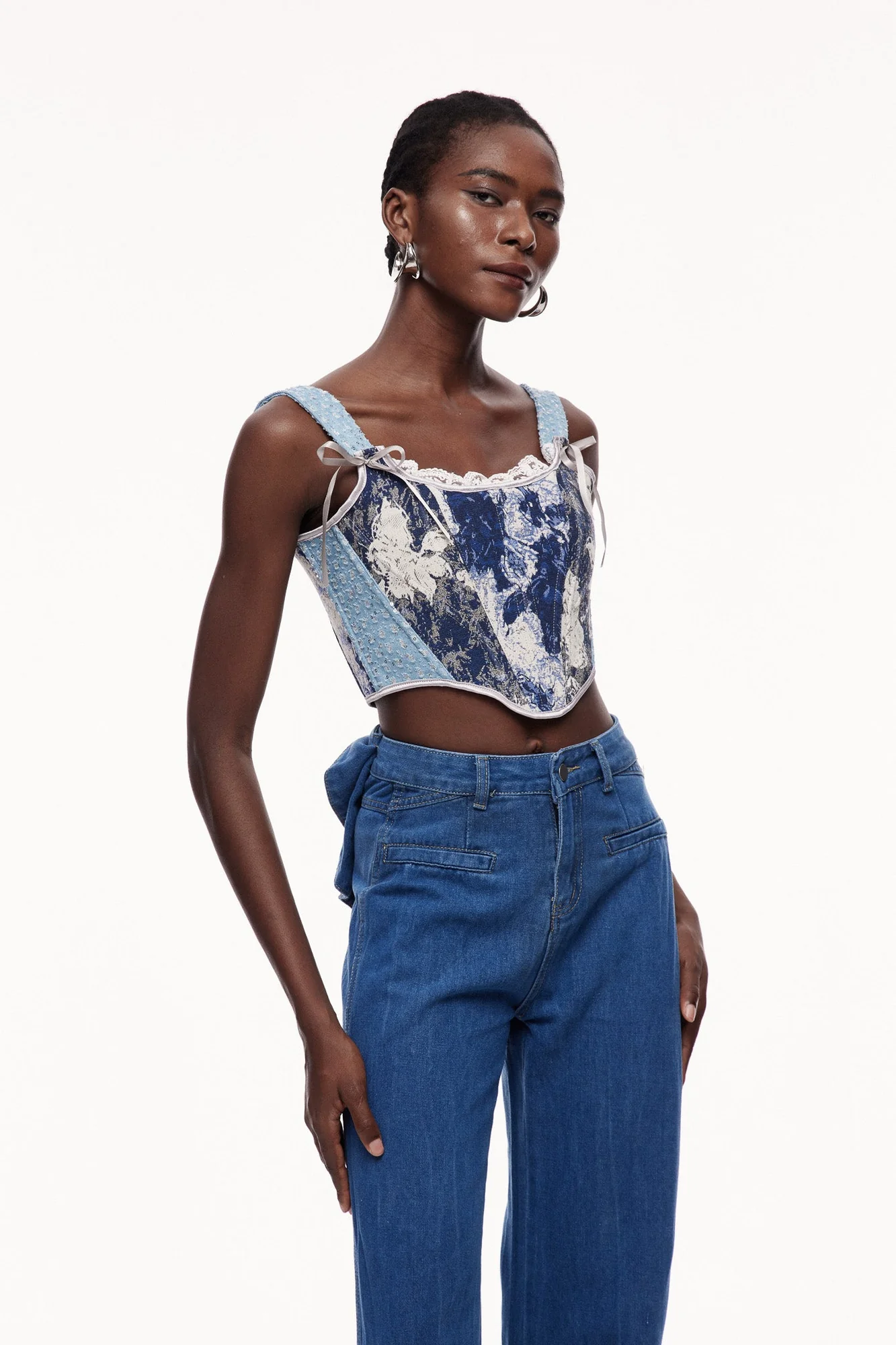 Elevate your wardrobe with this charming Print Sequin Corset Top in vibrant blue color. Expertly designed to combine structure and sparkle, this top features a tailored corset silhouette that enhances your shape while the intricate sequin print adds a refined, eye-catching texture. Ideal for sophisticated evening events or stylish daywear, it offers both elegance and a confident fit, making it a versatile statement piece for any fashion-forward collection. The non-stretch fabric ensures a comfortable all-day wear. Clean with a gentle machine wash. Please note that color may vary due to lighting in images.