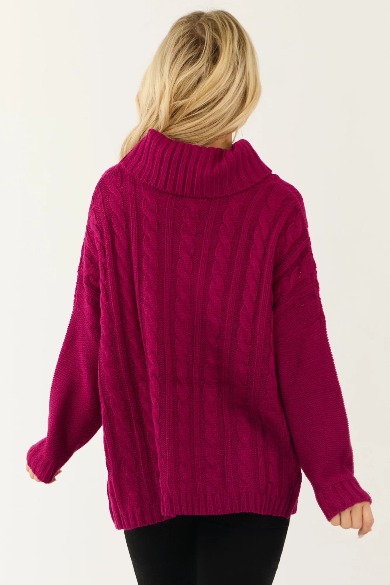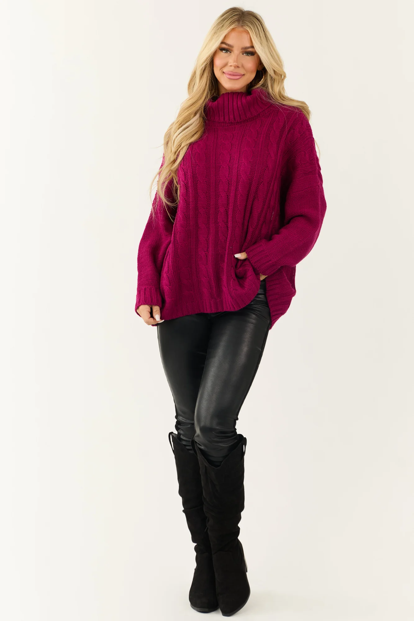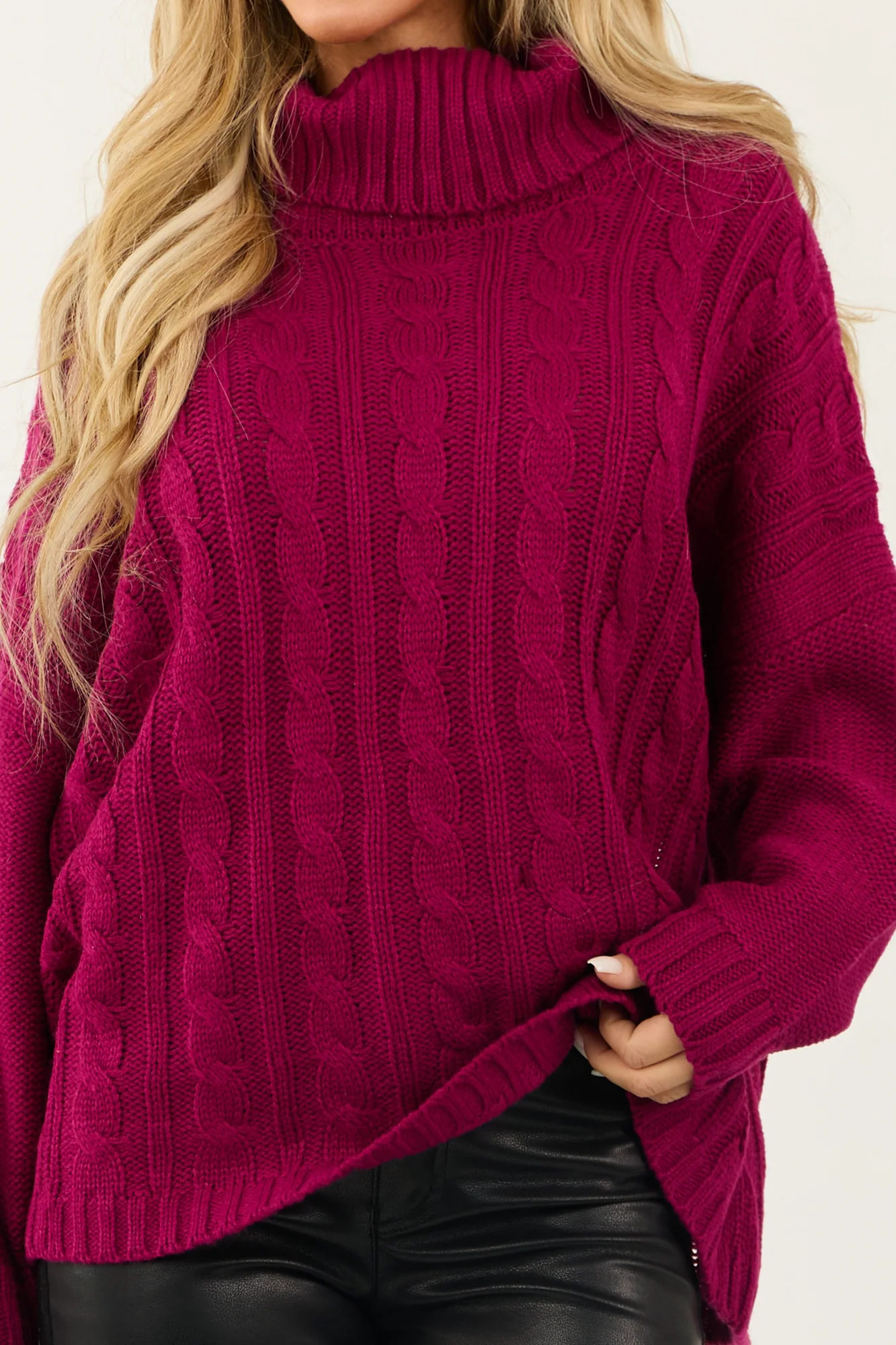 Indulge in luxurious warmth with our Purple Cable Knit Turtleneck Sweater made from 100% Acrylic. This stylish sweater boasts a casual fit adorned with stretchy cable knit, ribbed trim, and a chic turtleneck design. Perfect for any occasion, whether its a cozy night in or a night out on the town. Available in sizes S, M, and L.