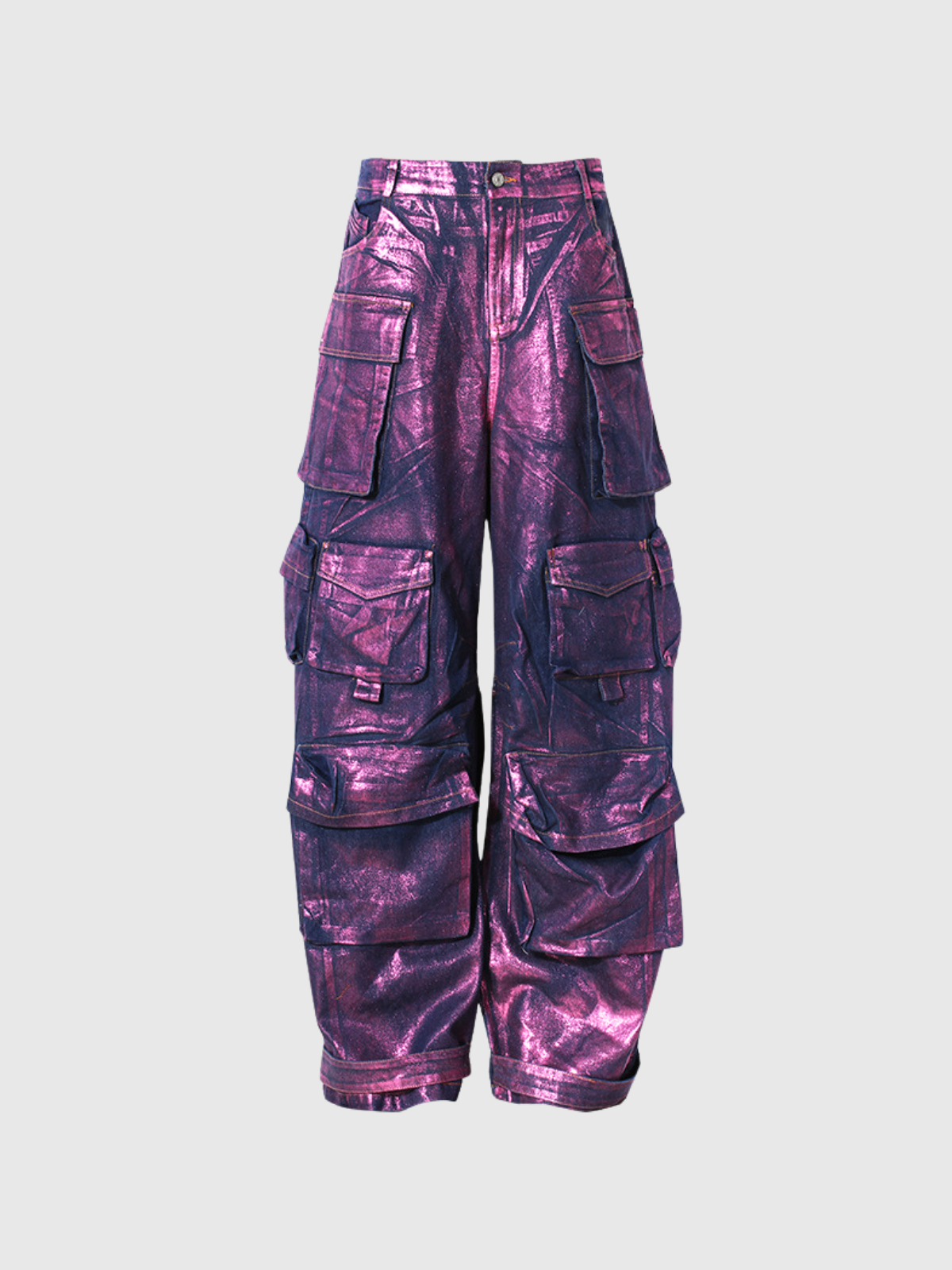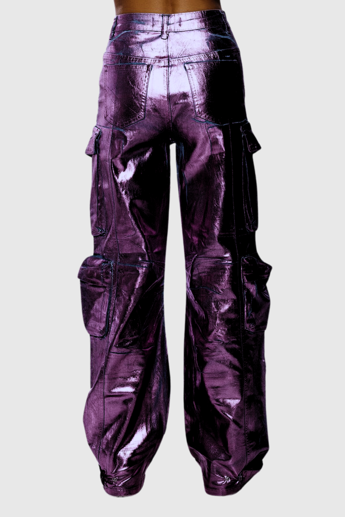 Purple Metallic Cargo Jeans – Stylish Functional Design