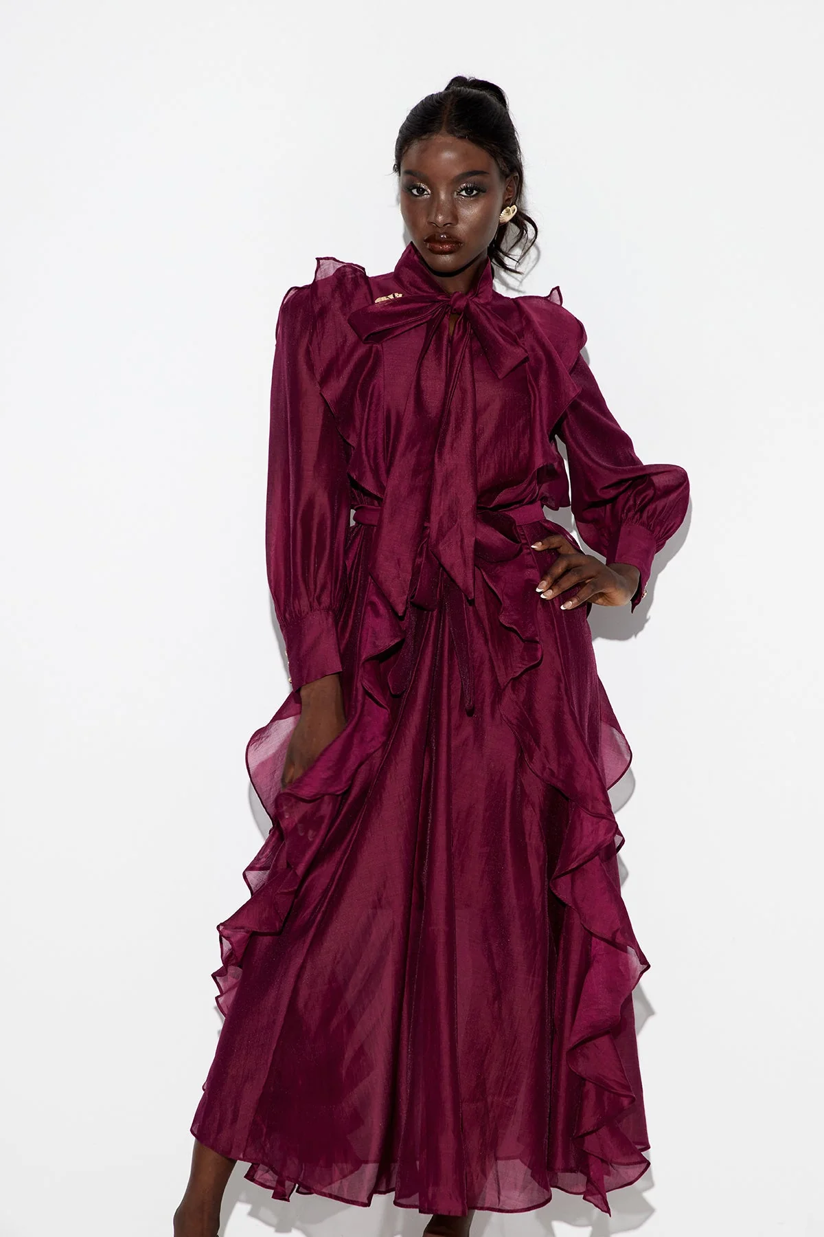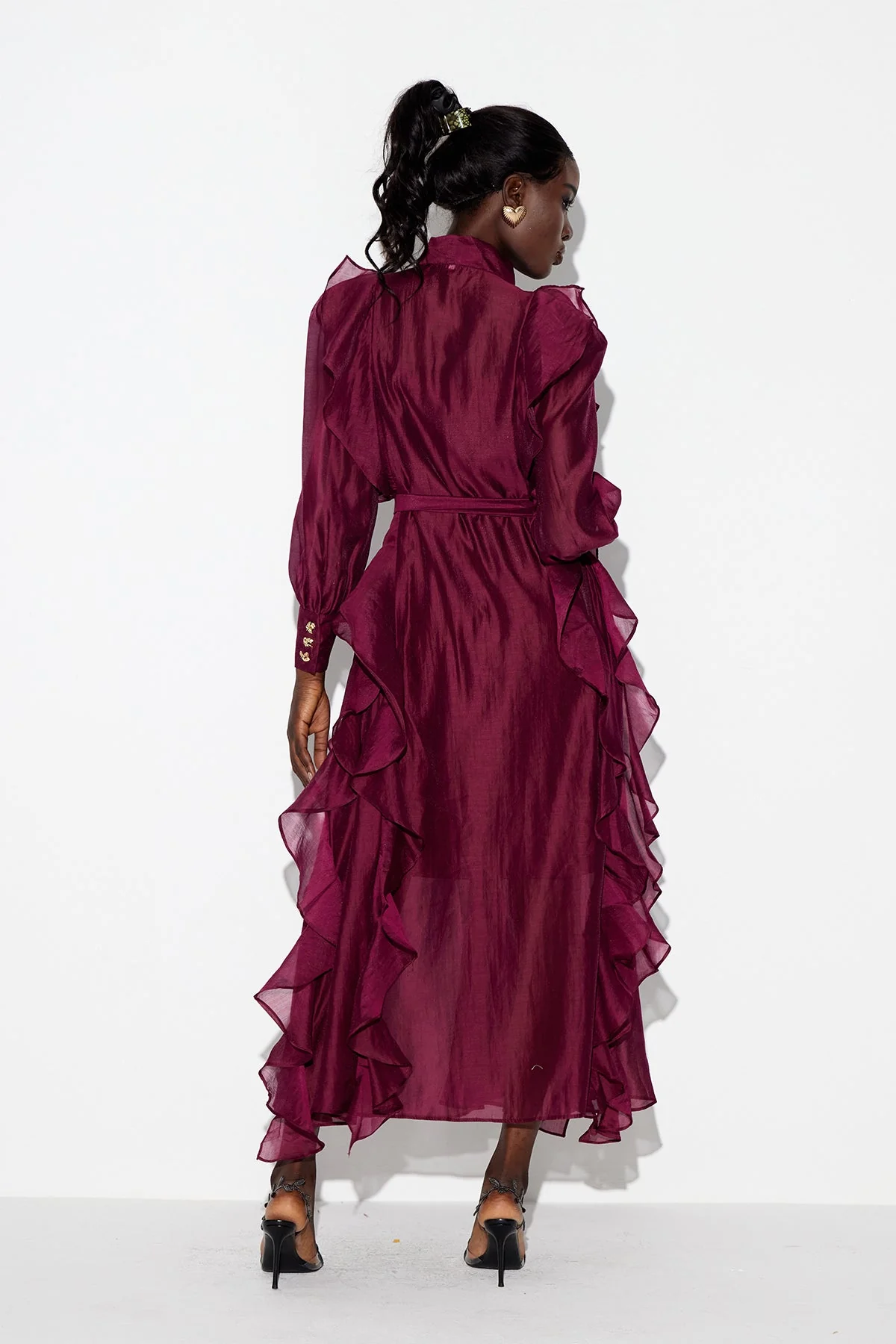 Elevate your wardrobe with our Purple Ruffle Maxi Dress, expertly crafted to blend elegant style with comfort. This flowing maxi silhouette, delicate ruffle detailing, and flattering shape make it perfect for formal occasions and casual wear. Embody timeless femininity with this sophisticated and versatile dress that enhances your natural poise. The regal purple hue adds a touch of royalty to your ensemble. Non-stretch fabric. Gentle machine wash recommended. Please note, color may vary due to lighting on images.