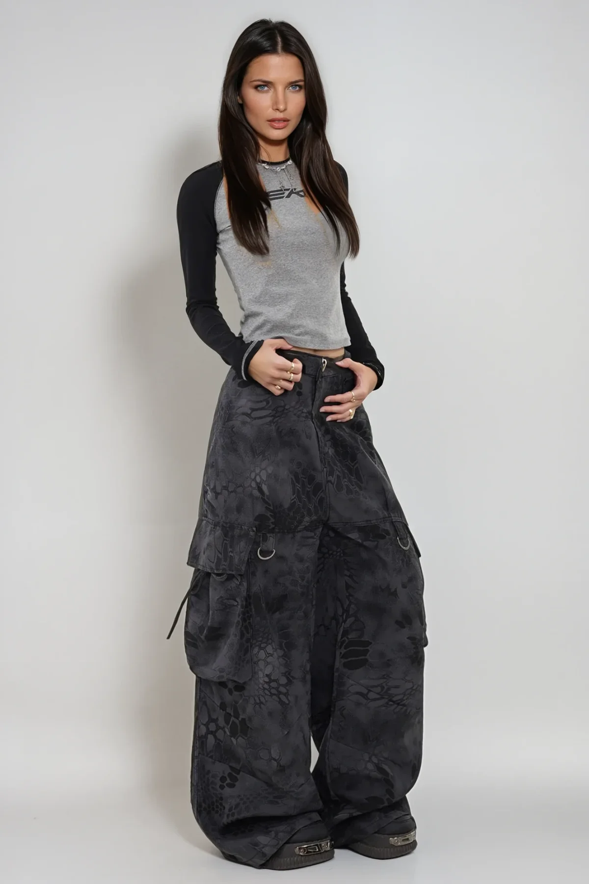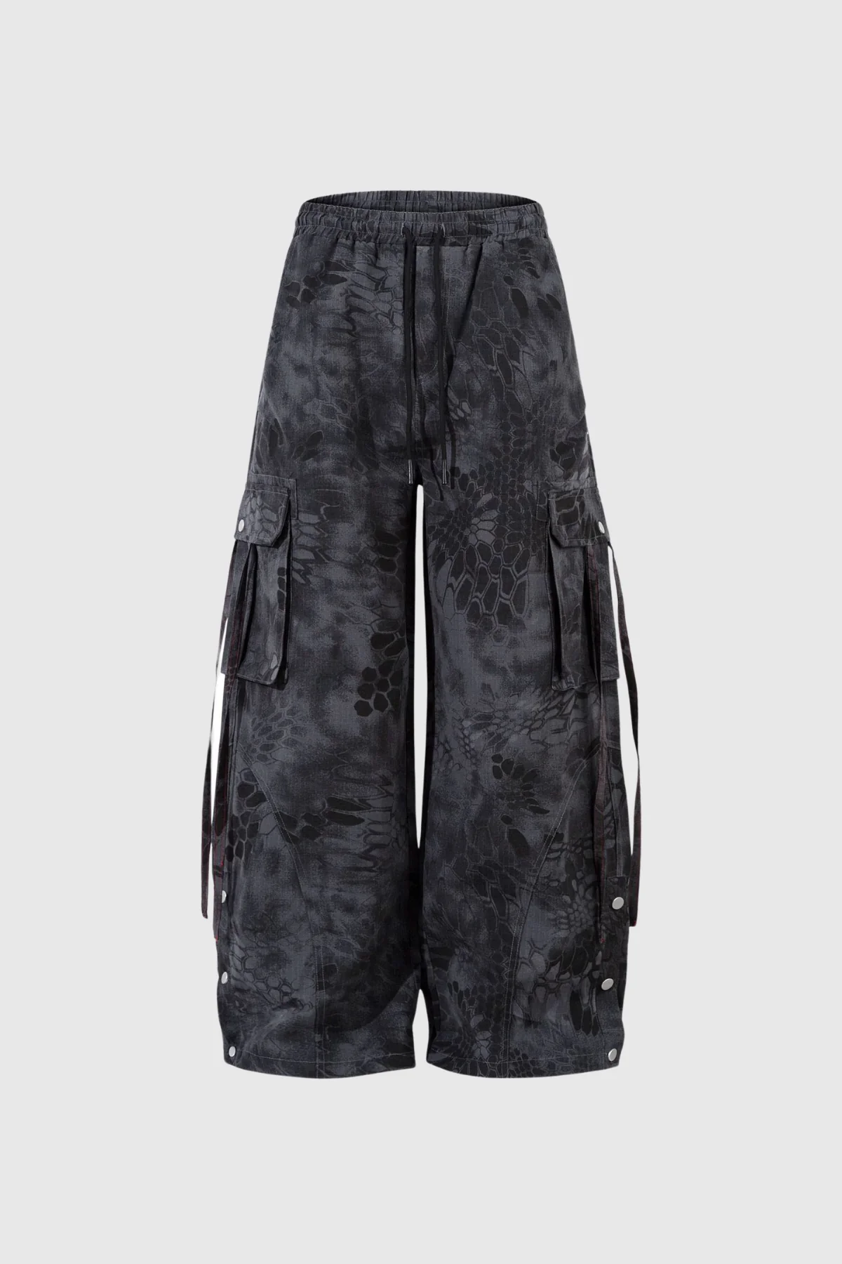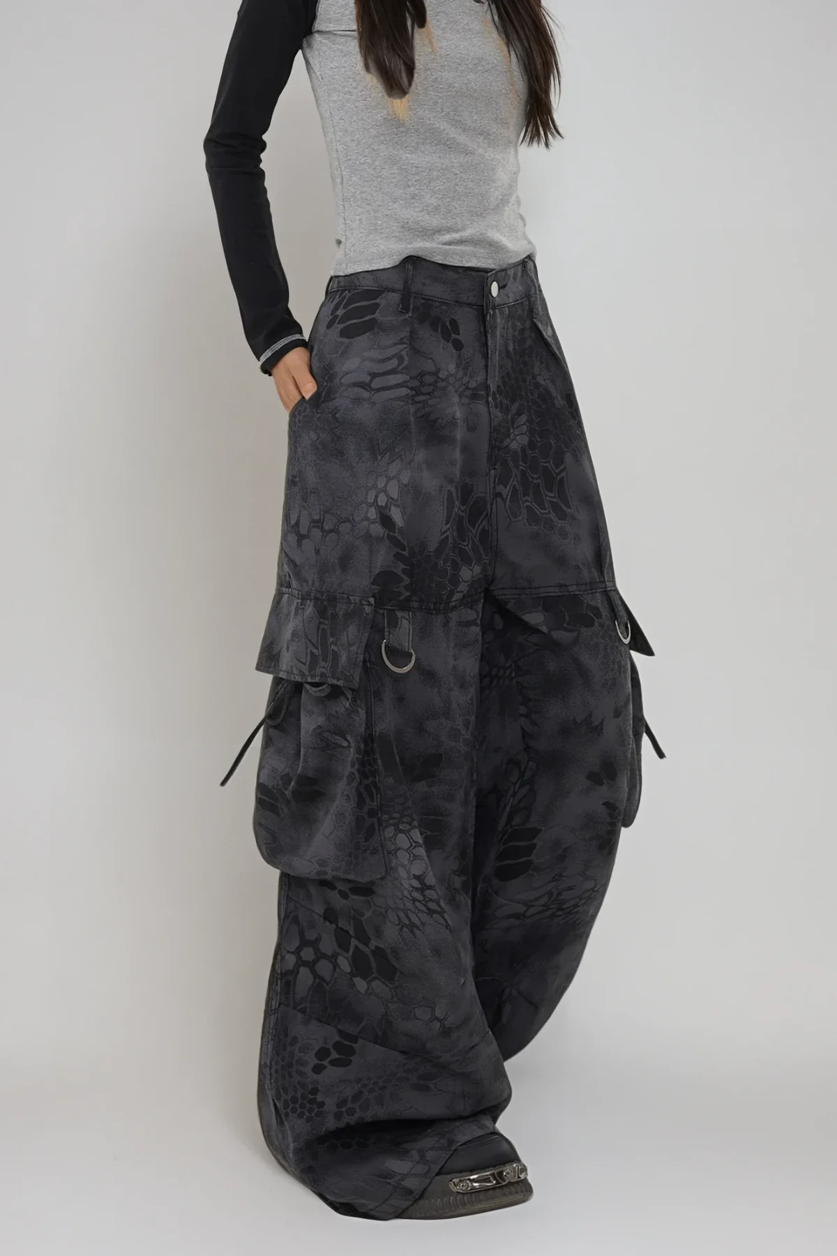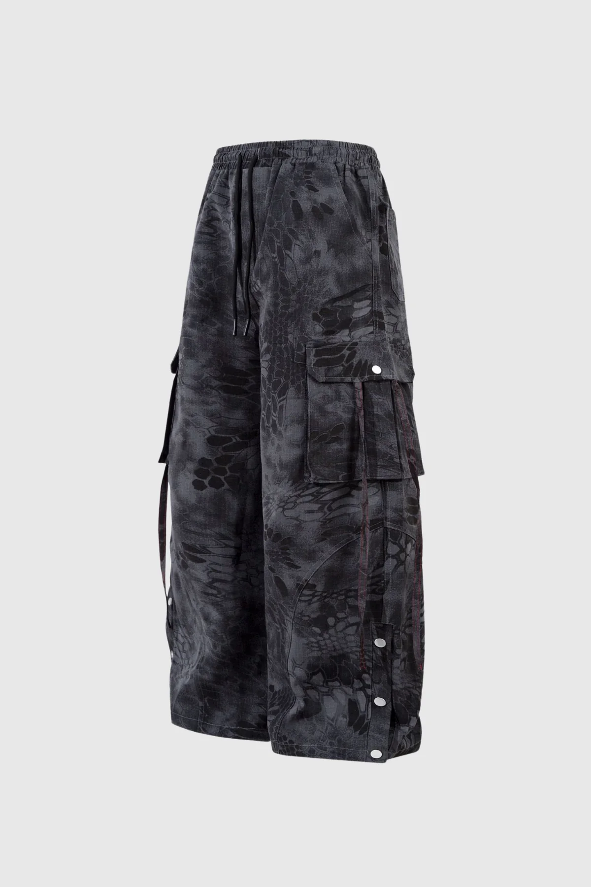 Experience the perfect blend of style and functionality with these Python Pattern Black Cargo Pants. The striking python-inspired design adds a contemporary touch to the classic cargo silhouette. Featuring multiple pockets for convenience and a tailored fit for comfort and mobility, these pants are ideal for those who want to make a fashion statement while staying practical. This non-stretch garment should be gently machine washed to maintain its vibrant color. Embrace urban edge with these printed pants .