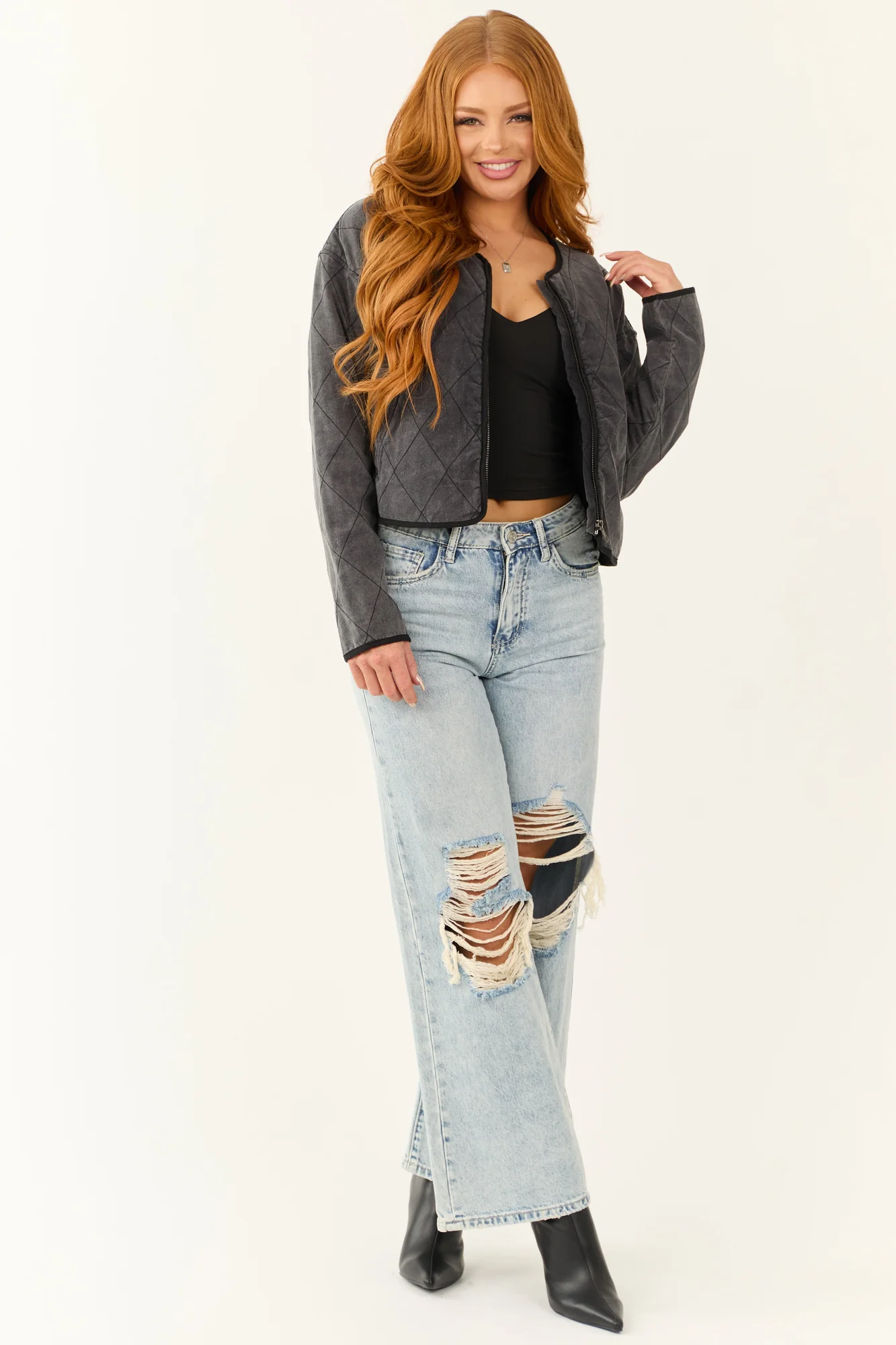 Achieve a stylish look with our Black Quilted Zip Up Jacket featuring drop shoulder design, side pockets, and woven non-stretchy fabric for a comfy fit. This jacket, made of 100% Cotton with a polyester-cotton blend lining, provides warmth and style during fall and winter. Hand wash cold separately to maintain the color and hang to dry. Available in sizes S, M, and L. Model is wearing a size Small. Model’s Profile: Size 1, Height 55″, Bust 31″, Waist 24″.