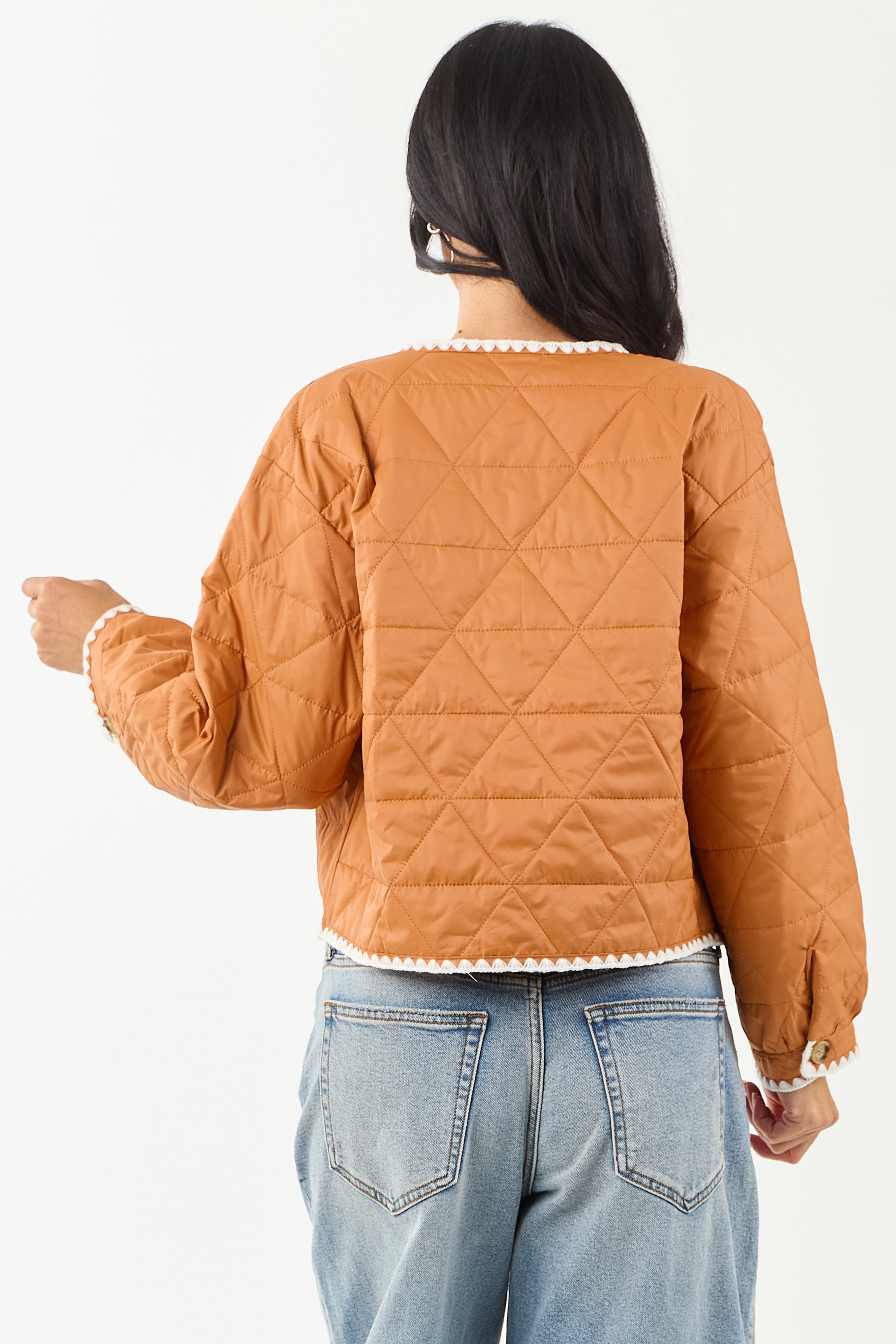 Stay warm in style with our Sedona quilted jacket featuring a classic cut and contrast trim design. This cozy outerwear piece exudes cutesy vintage vibes and is perfect for the fall season. Made of 100% Nylon, it includes chest pockets, button cuffs, and is available in sizes S, M, and L. Get yours today and embrace retro-chic fashion effortlessly!