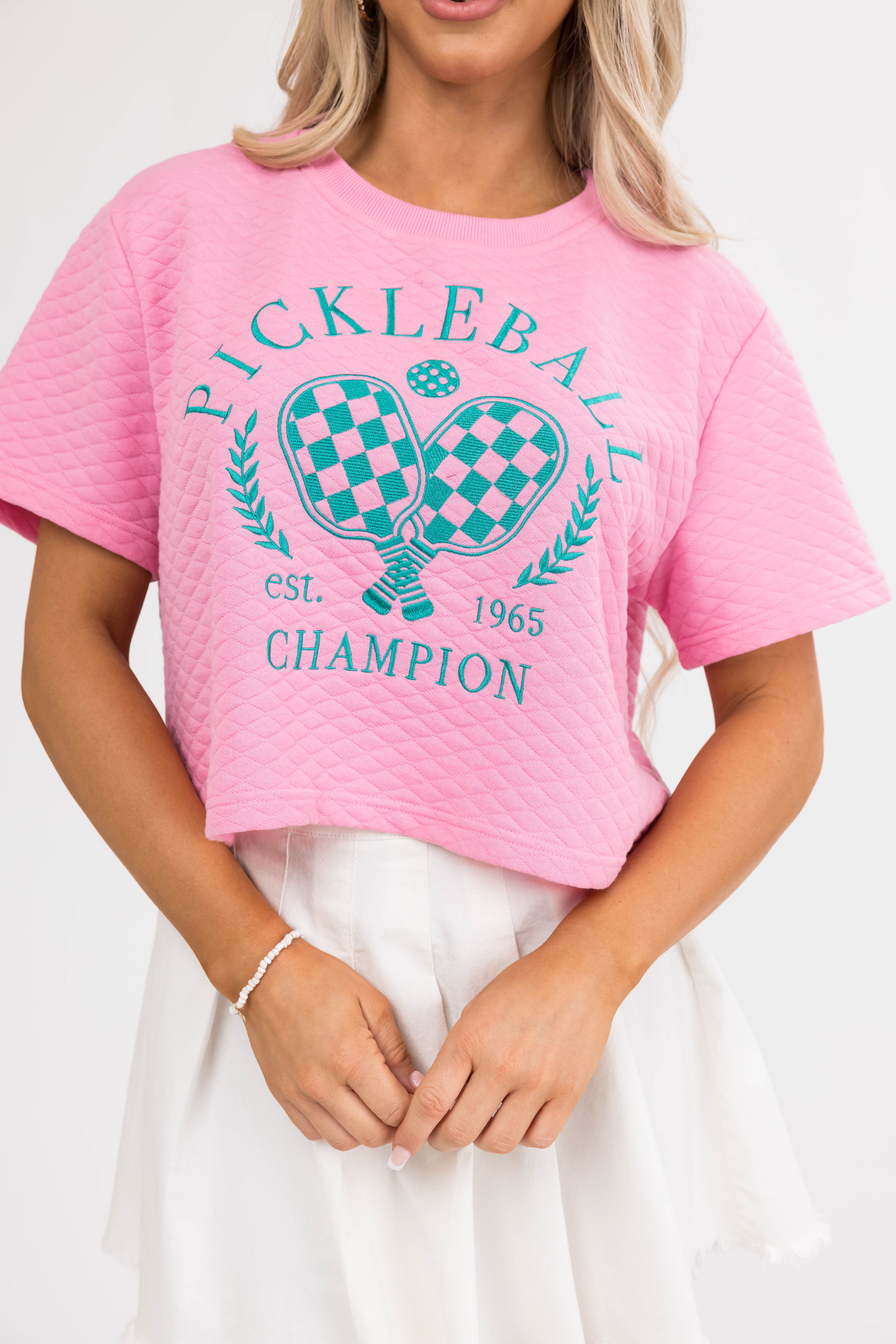 Discover sophisticated style with our Carnation Quilted Graphic Top in a lovely Juniper shade. This top features a boxy fit, semi-stretchy quilted knit fabric, a round neckline, and boxy half sleeves. Pair it with our Carnation Quilted Graphic Shorts for a coordinated look. Stay comfortable and chic with this unlined top made of 100% Polyester. Perfect for casual occasions in spring and summer. Available in sizes S, M, and L.
