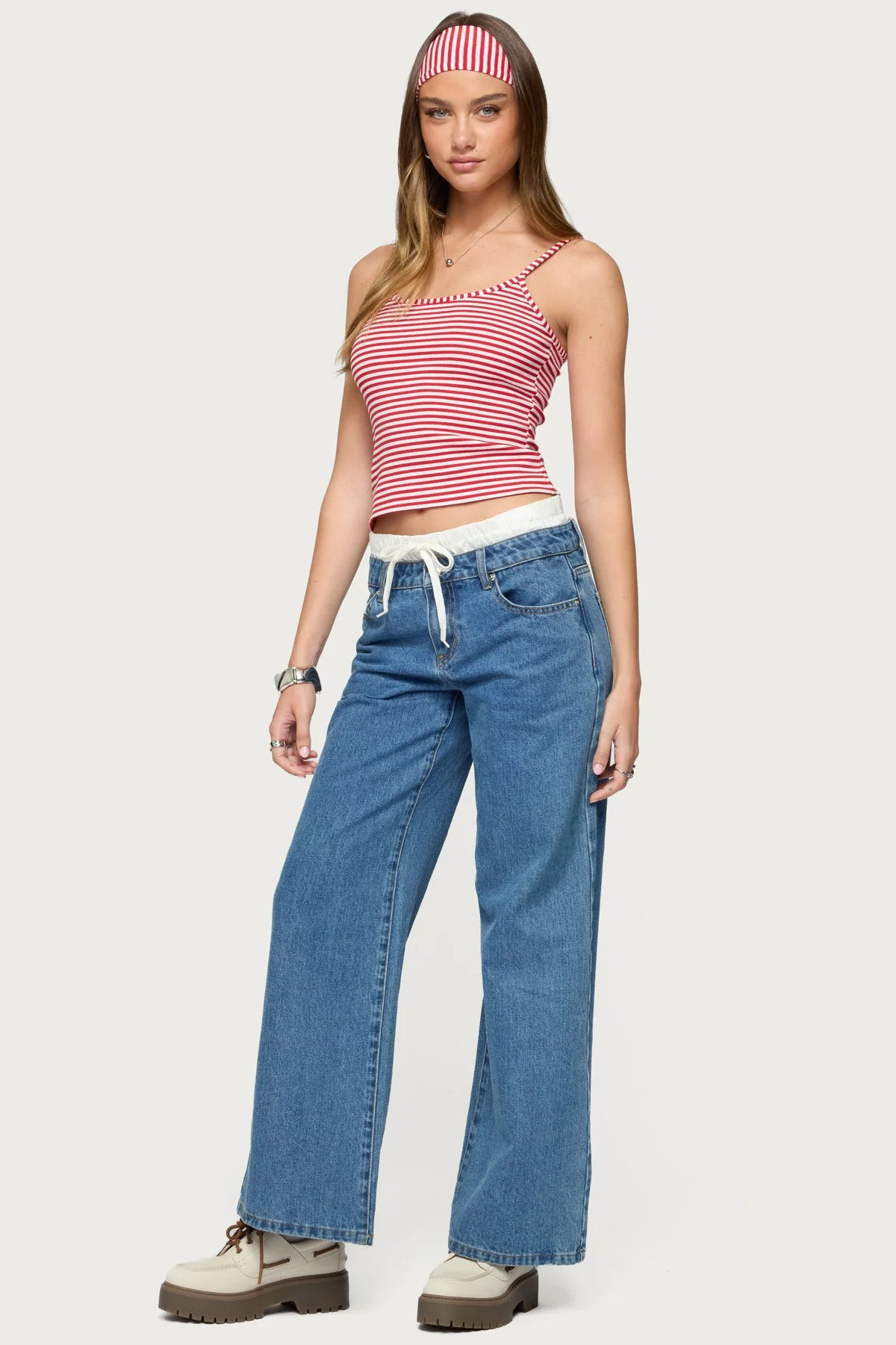 This two-piece tank top set is a stylish addition to your wardrobe. The tank top features adjustable straps for a great fit, while the matching headband adds a fun touch. Made with a blend of cotton and spandex, it offers comfort and stretch. Embrace the striped pattern and stand out in style. Ideal for everyday wear, this set is machine washable for easy care. Available in sizes XS to XL. Make a fashion statement effortlessly!