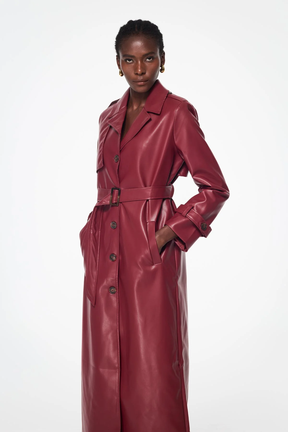 Discover the essence of style with this red buckle leather jacket . Carefully crafted from high-quality leather, this jacket boasts precision stitching for durability. The edgy buckle details not only add flair but also offer a personalized fit. Stay warm and fashionable in this must-have jacket. Made of 50% Polyester and 50% Cotton, this non-stretch jacket is easy to clean with a gentle machine wash. Please note, color may vary due to lighting. Elevate your wardrobe with this chic essential today!