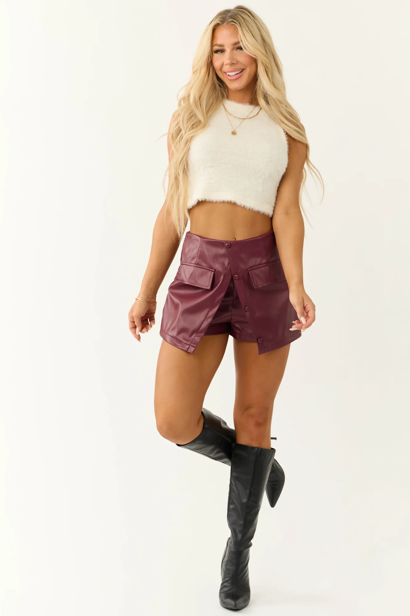 Experience bold fashion with our Red Faux Leather High Waisted Skort offering a trendy look for your wardrobe. This semi-stretchy skort features stylish pocket details, faux buttons, and a side zipper closure for added flair. Crafted from 100% Polyurethane, this skort is unlined and comes in sizes S, M, and L with waist measurements of 24″, 26″, and 28″ respectively. The inseam ranges from 1.5″ to 1.5″, while the length varies from 13″ to 14″. Ideal for date nights and fall season outings. Care instructions: Hand wash separately in cold water to prevent color bleeding, avoid bleach, and hang to dry. Model is 57″ tall, wearing a size Small.