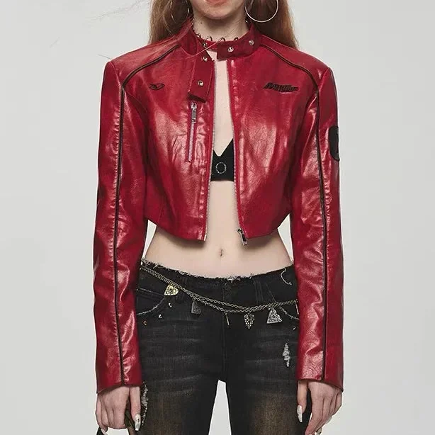 Explore the allure of our Limited Edition Red Faux Leather Motorcycle Jacket for Women, a unique showstopper designed to captivate attention. Crafted from a blend of premium faux leather and cotton, this jacket offers superior quality for the fashion-conscious rider. Stay both cozy and stylish in this striking Red Faux Leather Motorcycle Jacket for Women. View our Size Chart for accurate measurements and indulge in a purchase experience that promises 100% satisfaction. Need assistance? Contact Cult at any time for support.