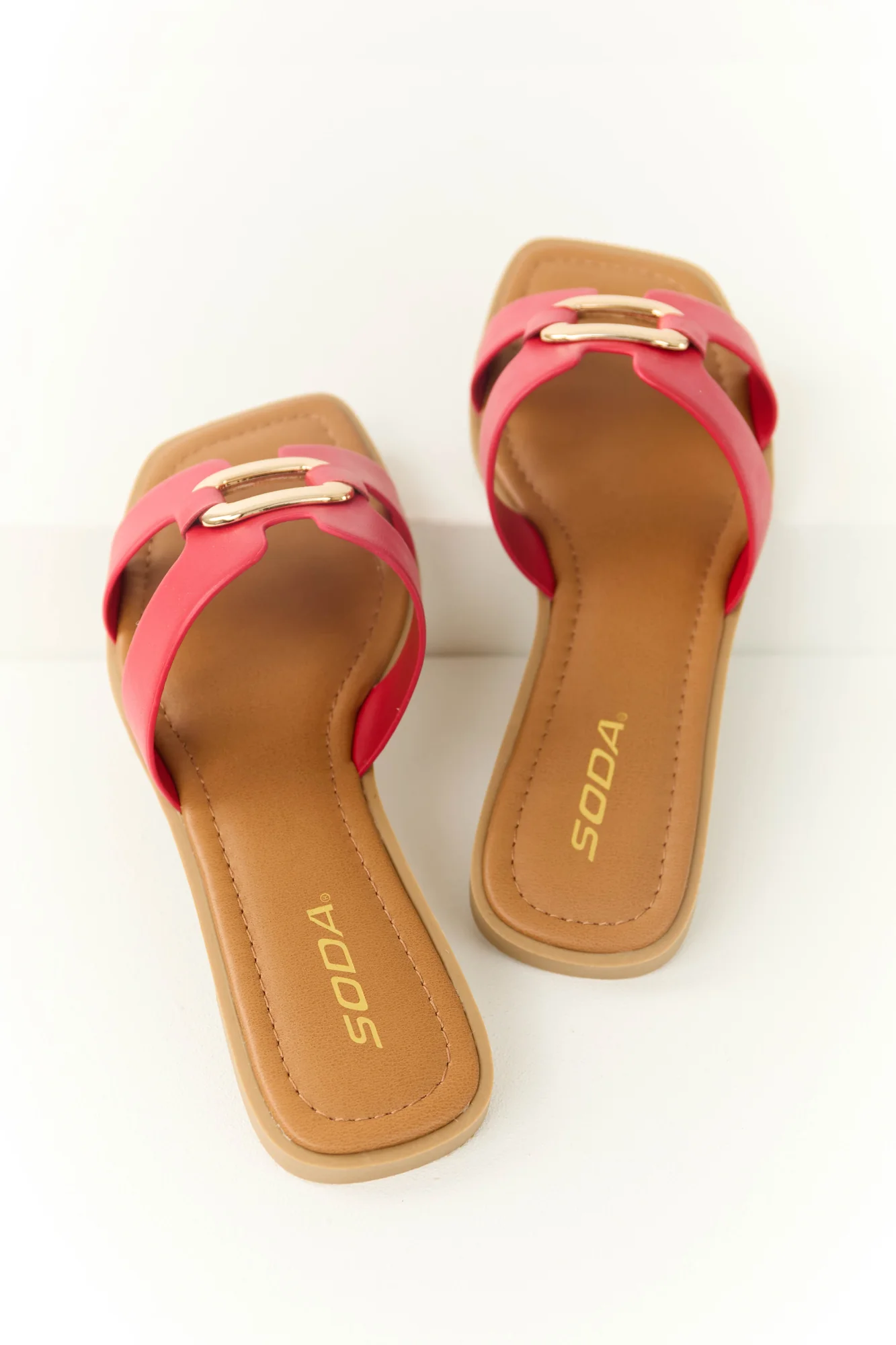 Step into style and comfort with these stunning Red Faux Leather Open Toe Platform Sandals. Made of nubuck faux leather, these sandals feature a square toe, a lightly cushioned insole, and a .15″ platform with a .25″ heel for the perfect blend of fashion and function. Enjoy the impeccable craftsmanship and timeless design. Imported.