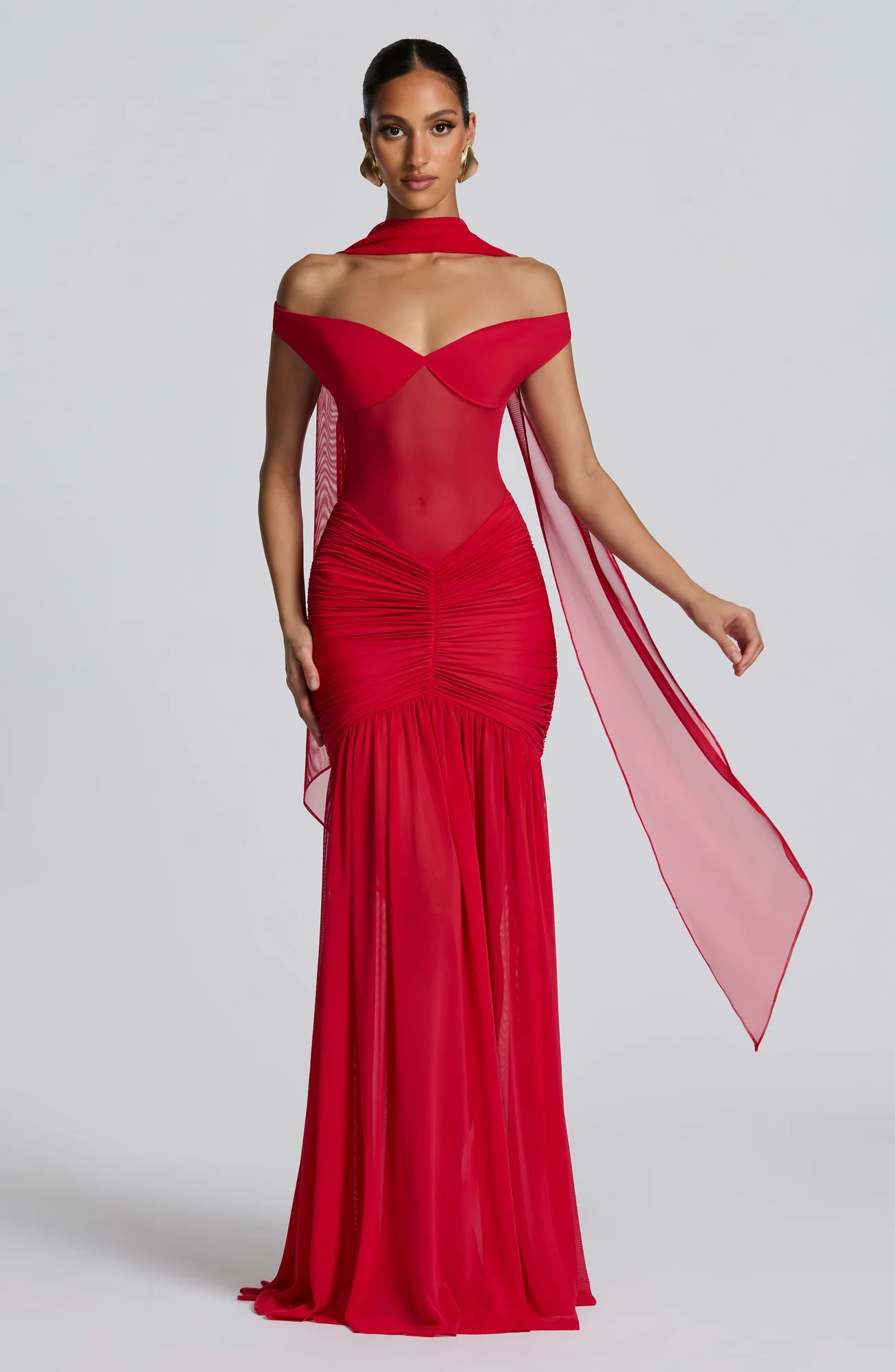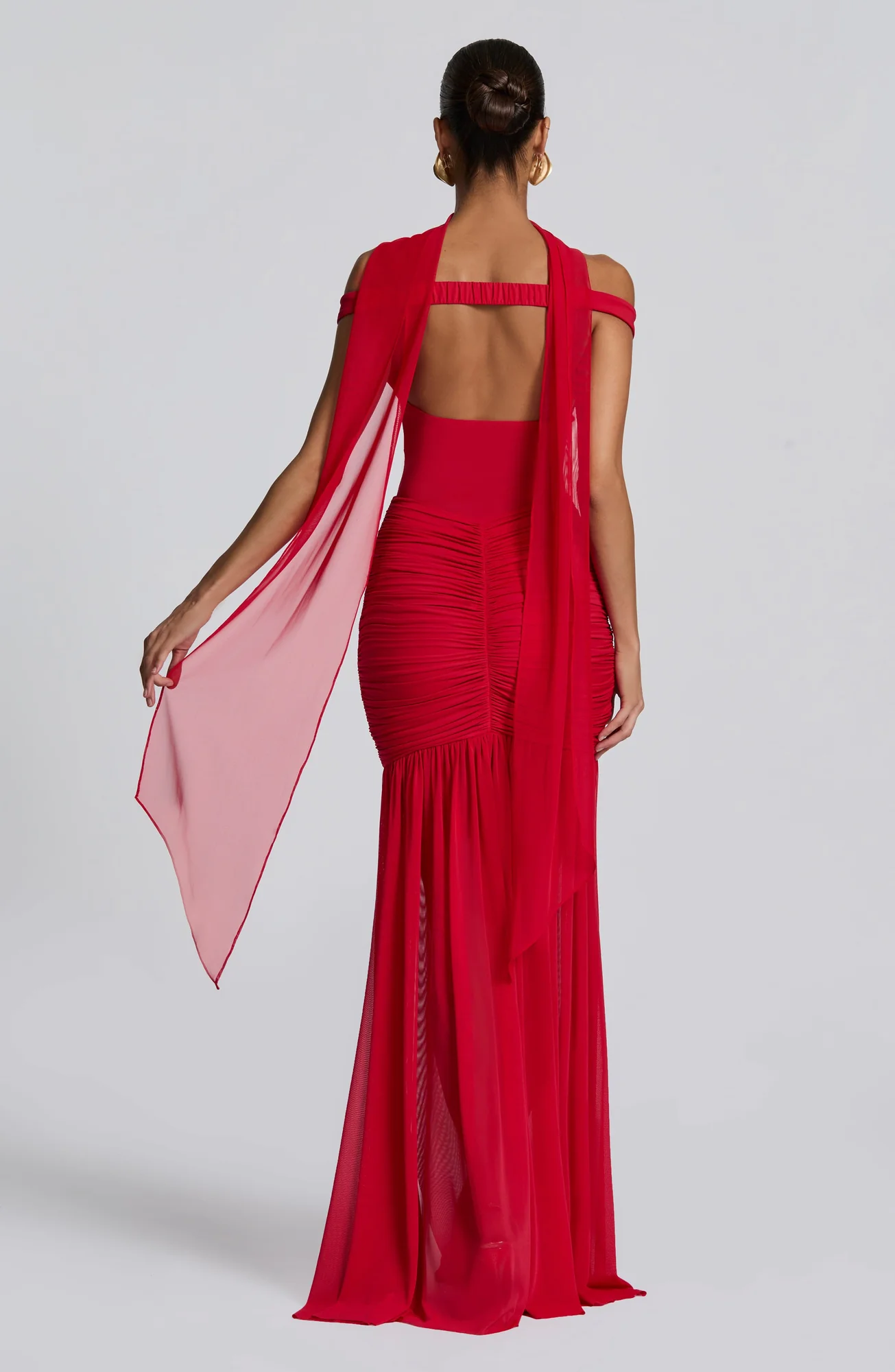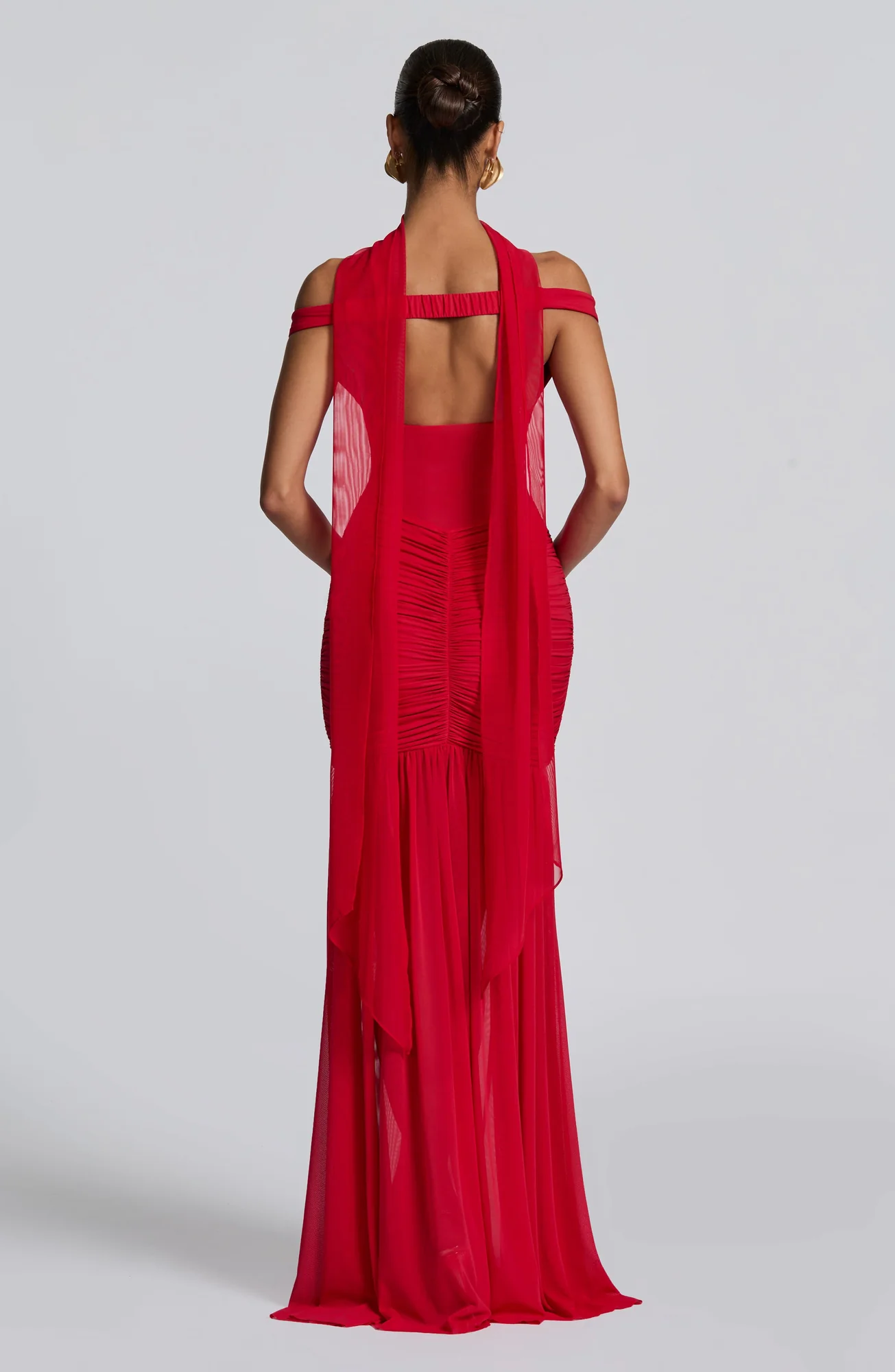 Wrap yourself in elegance with the Red Lightweight Mesh Draped Neck Scarf. Crafted from a delicate light stretch mesh fabric, this scarf effortlessly drapes around the neck, elevating your look with a refined touch. The vibrant red color adds a pop of color to any outfit. Perfect for both casual and formal occasions, this scarf is a versatile accessory that enhances your style while keeping you comfortable. Add a touch of sophistication to your wardrobe with this must-have accessory.