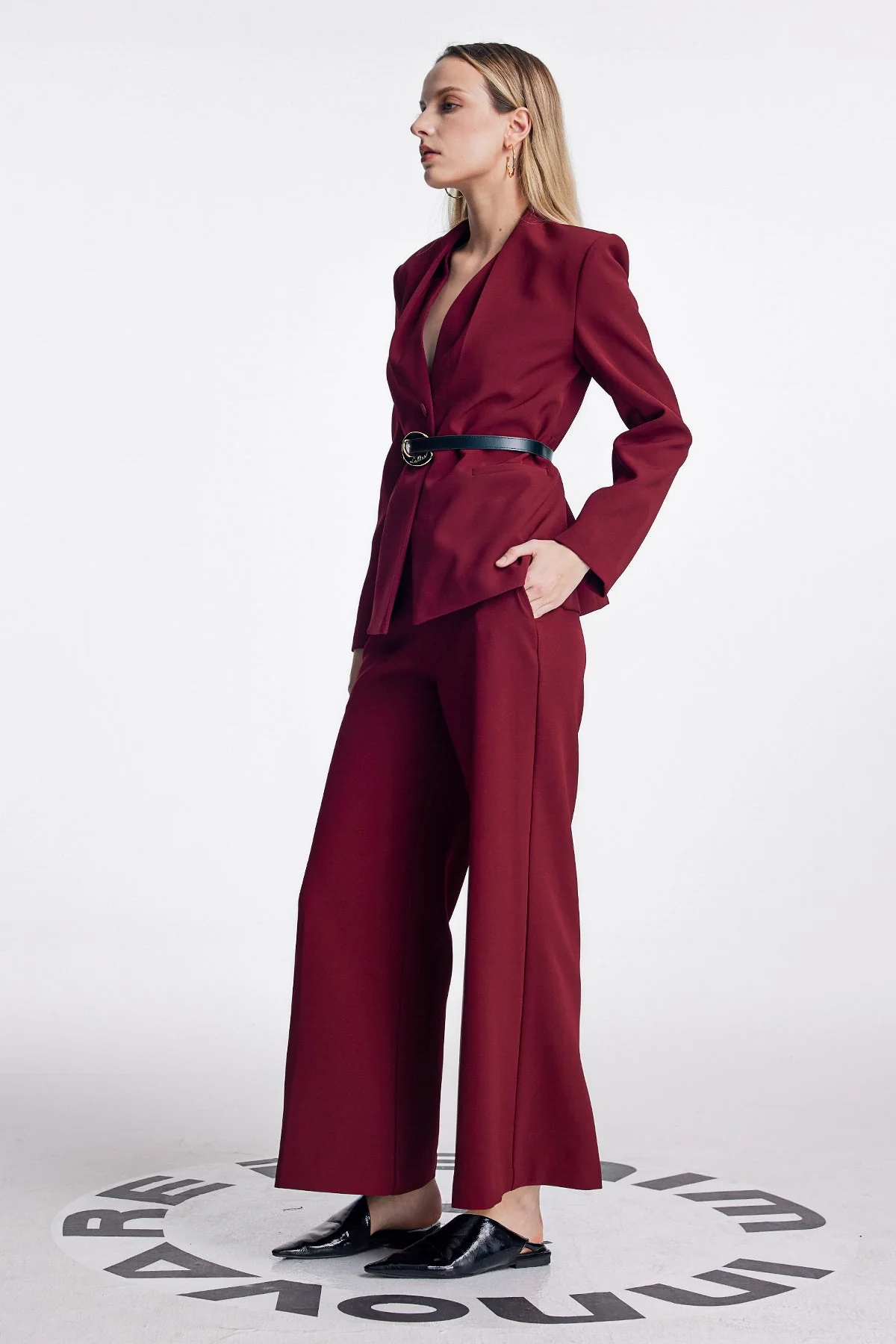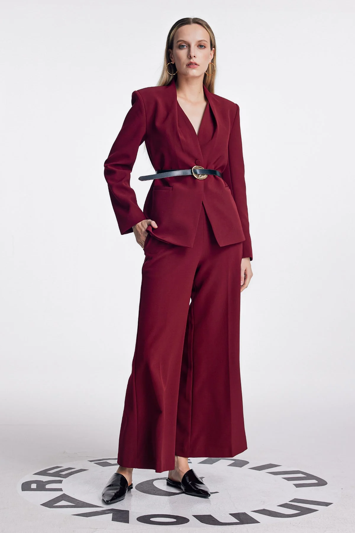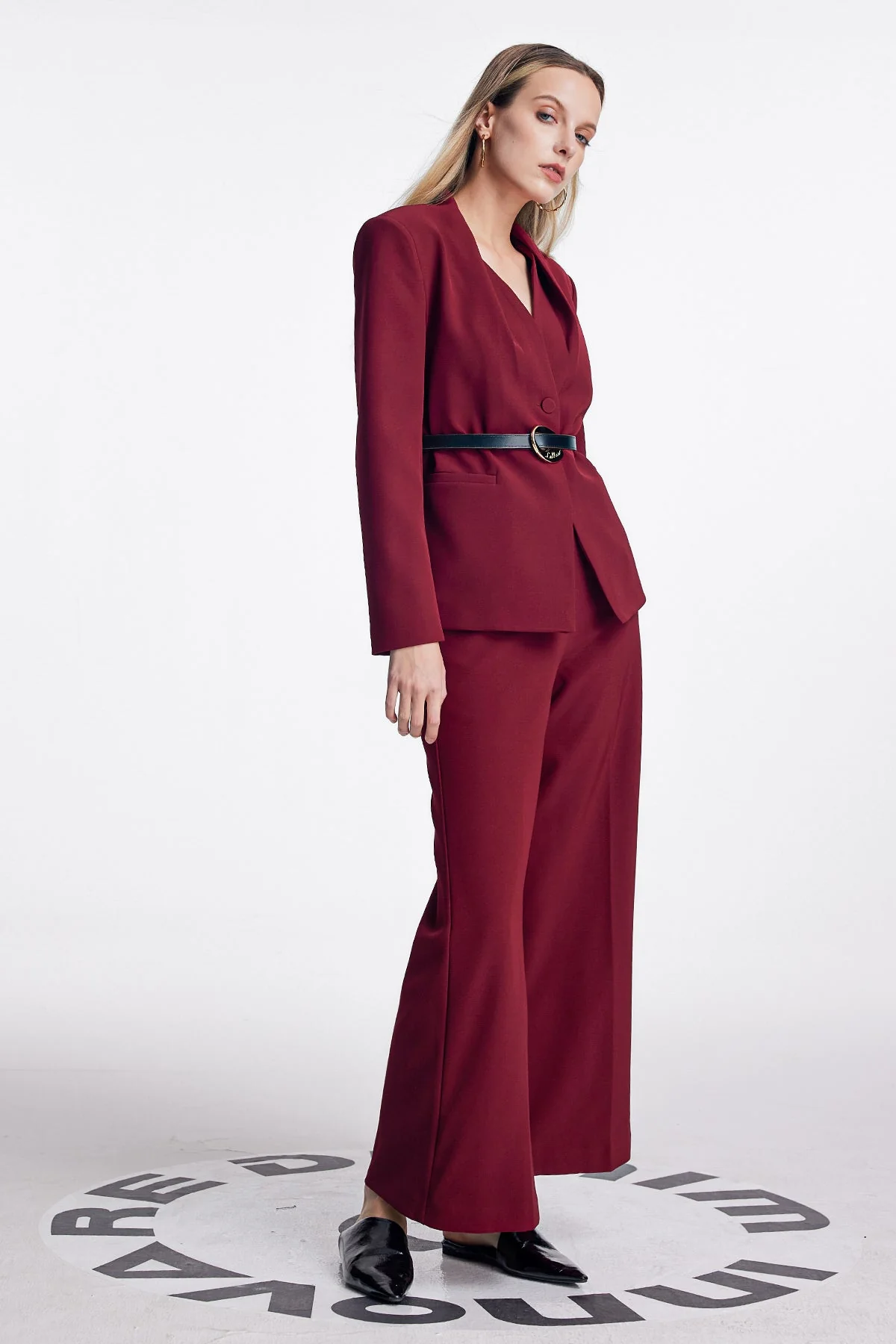 Discover sophistication with our Red Plunge Buckle Pants Set for women. Boasting a plunging neckline and modern buckle detailing, this ensemble exudes style. Crafted with premium 50% Polyester and 50% Cotton, it ensures both quality and comfort. The vibrant red color adds a bold touch to your wardrobe, radiating confidence and fashion-forward flair in every wear. Embrace elegance and versatility with this chic essential. This set is ideal for office, casual wear or rebellious style outfits. Material: 50% Polyester, 50% Cotton (Non-Stretch) Care Instructions: Machine wash gentle cycle, color may vary in images due to lighting.