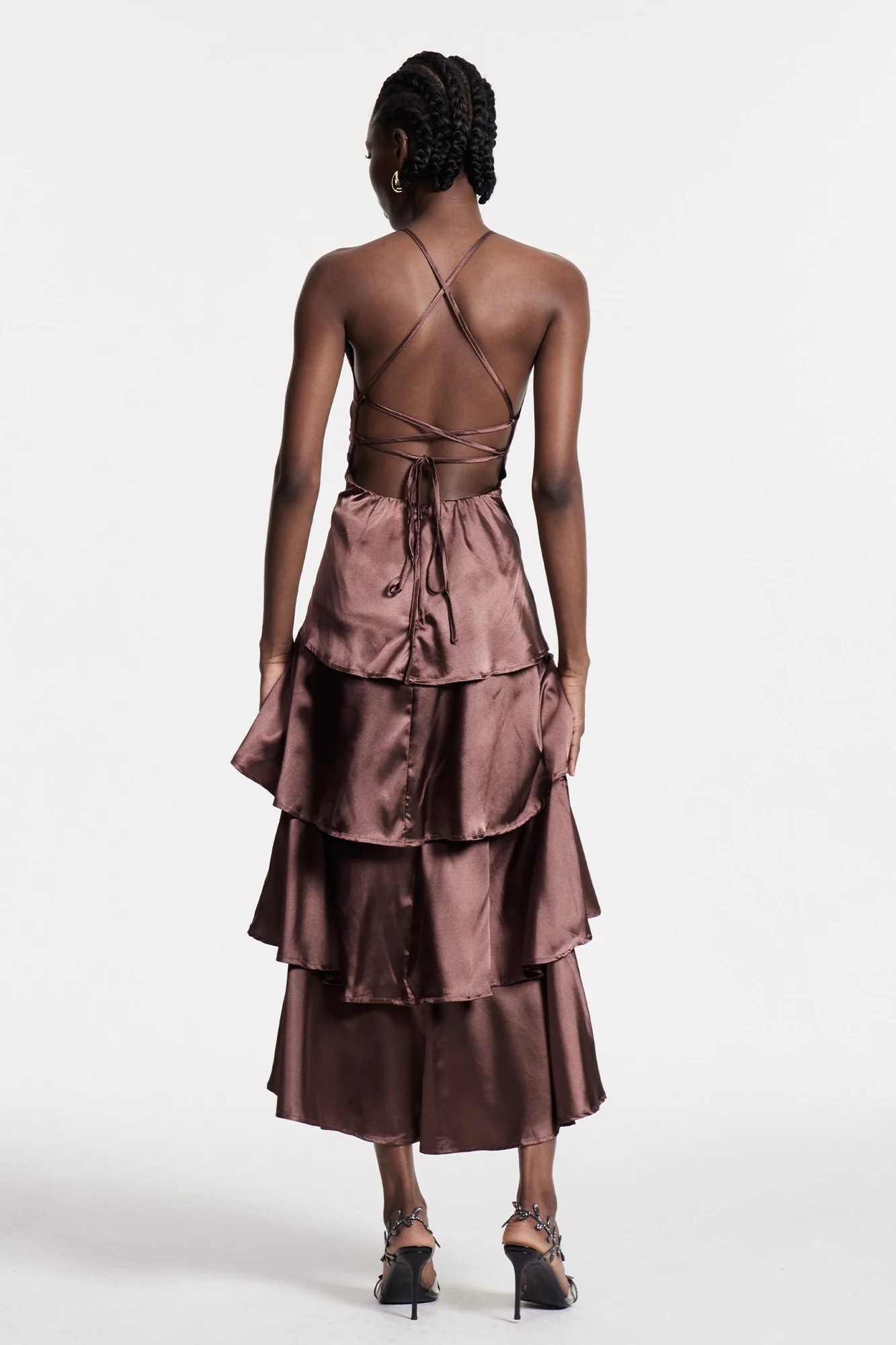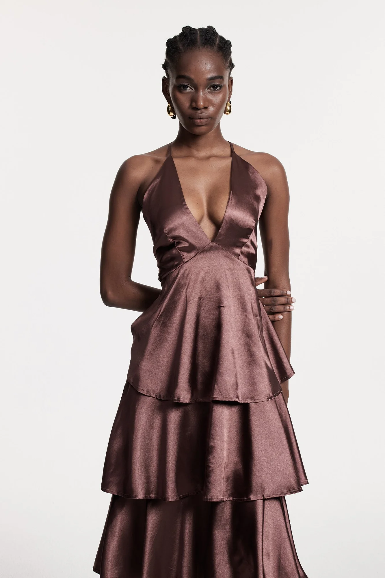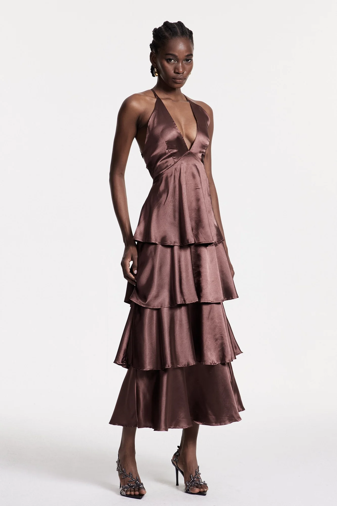 Elevate your style with the Red Satin Backless Maxi Dress featuring a daring deep neckline and elegant ruffle detailing for enhanced movement and silhouette. Perfect for formal occasions or upscale gatherings, its backless design offers a striking, breathable fit. This chic essential exudes confidence, allure, and comfort, ensuring a refined look with ease and grace throughout wear. Color may vary slightly due to lighting conditions. This dress does not stretch and is recommended for gentle machine wash to maintain its beauty.