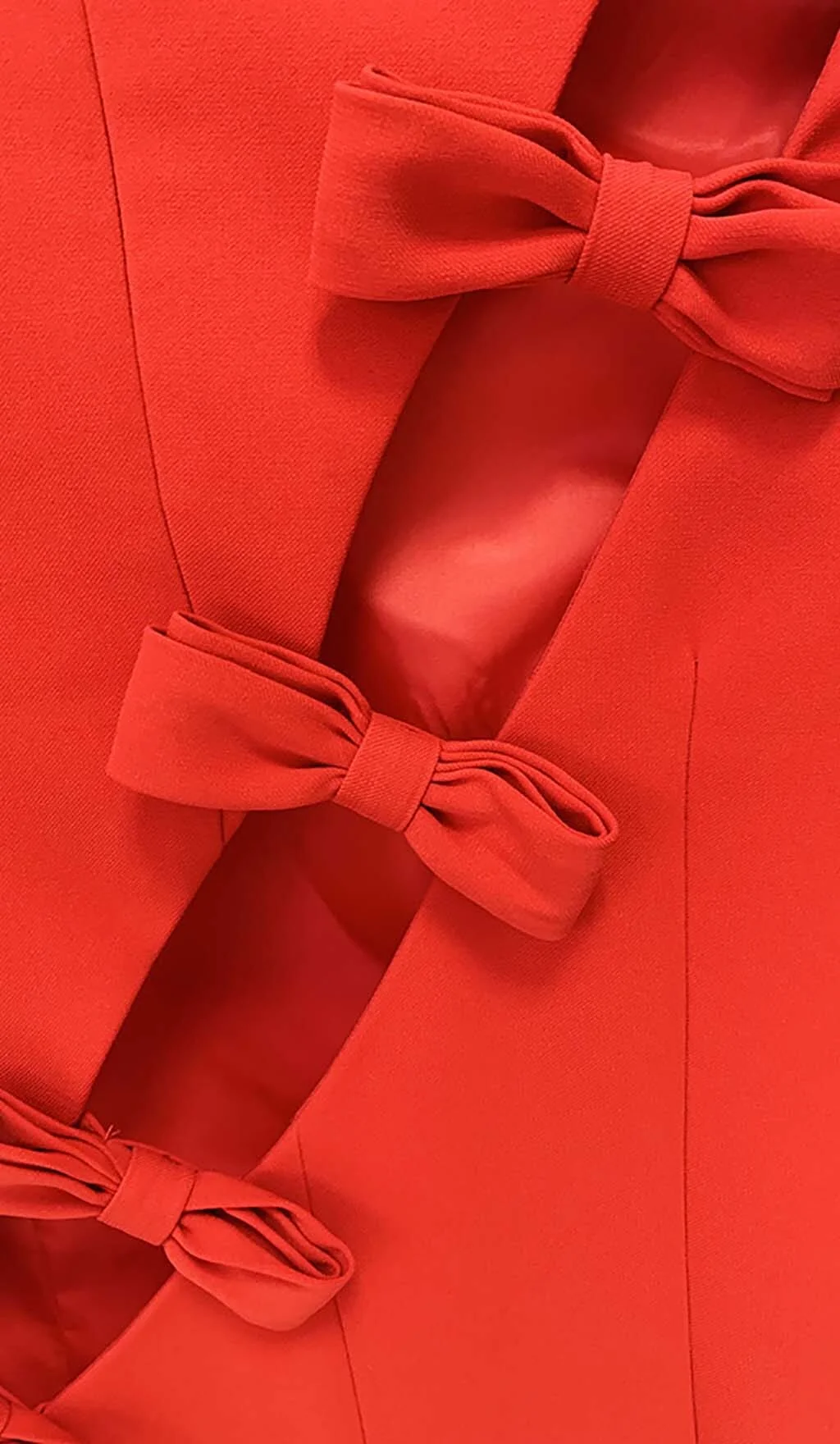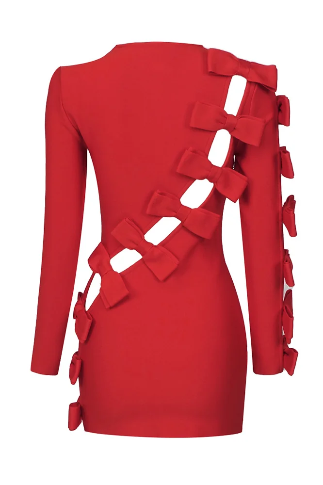 Elevate your party wardrobe with the charming Red Satin Cutout Bow Mini Dress from Night Novas. Delicate straps elegantly tie up the open back of this satin dress, forming a cute bow that adds a touch of flair. The figure-flattering silhouette ensures a chic look without the need for extra accessories, complemented only by your radiant smile! This dress is best dry cleaned for longevity. Please note that the color may slightly vary due to lighting. The product images showcase the most accurate color representation. The sizing of this item is true to our chart, so simply refer to it for the perfect fit. Avoid altering the size as it is tailored to match our specifications.