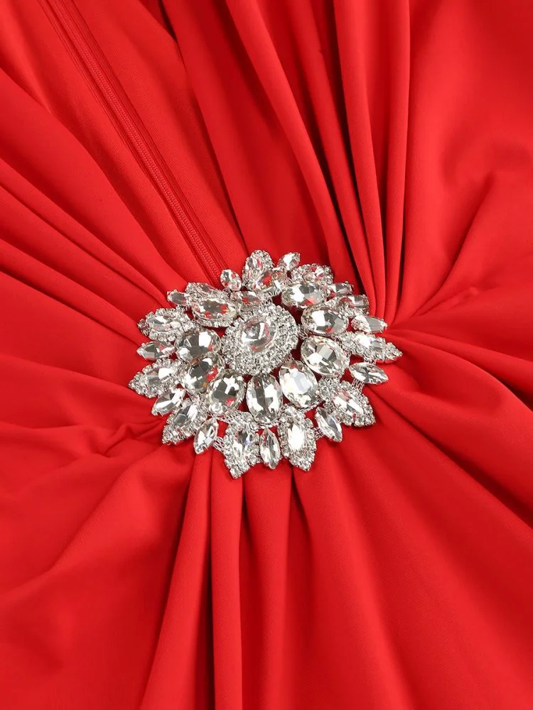 Elevate your style with our red V-neck maxi dress adorned with beautiful floral embellishments. This elegant dress features a draped design, long sleeves for added sophistication, and a versatile black color for a timeless look. Handmade with 90% polyester fiber and 10% spandex, it offers a perfect fit according to our size chart. Ideal for any occasion, this stunning maxi dress is a must-have in your wardrobe. Hand wash or dry clean only.