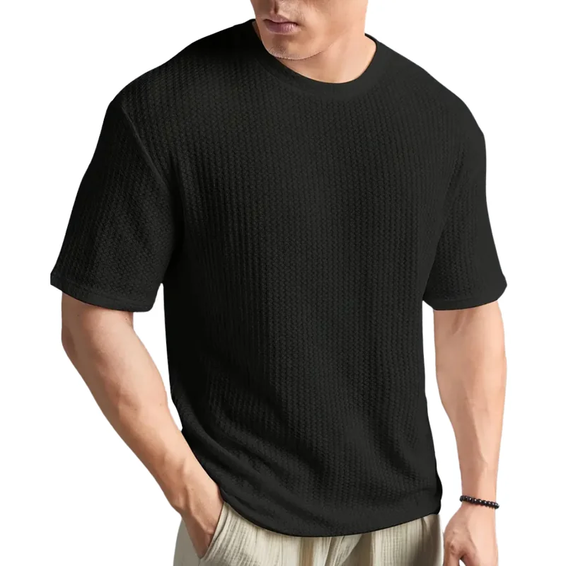 Indulge in timeless fashion with our Retro Textured Tee, redefining vintage charm with a touch of modern luxury. Crafted from premium breathable fabric, this tee features a unique textured design for a sophisticated look. Effortlessly transition from day to night with its versatile style, pairing perfectly with various bottoms. Enjoy all-day comfort and easy maintenance with this classic piece that never goes out of style. Elevate your wardrobe with this homage to classic fashion while embracing modern trends.