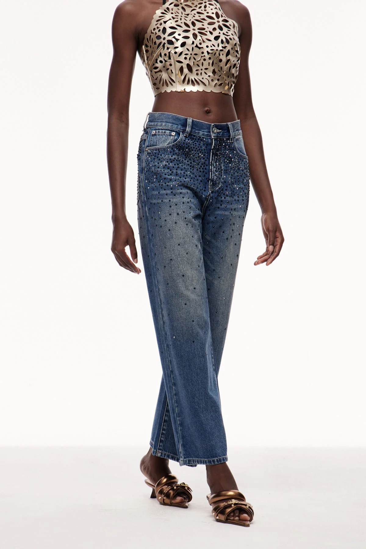 Elevate your wardrobe with these rhinestone embellished denim jeans . Expertly crafted to combine classic denim durability with sparkling rhinestone details, these jeans offer a refined and eye-catching look. Perfect for adding a touch of sophistication to casual or evening outfits, they provide a flattering fit that enhances your silhouette. Designed for comfort and style, these jeans strike the perfect balance between glamour and wearability, making them ideal for those seeking standout fashion. The non-stretch material ensures durability, while the gentle machine wash allows for easy care. Please note, color may vary due to lighting in images.