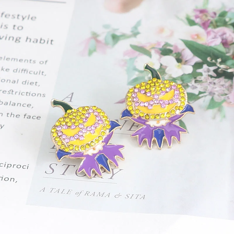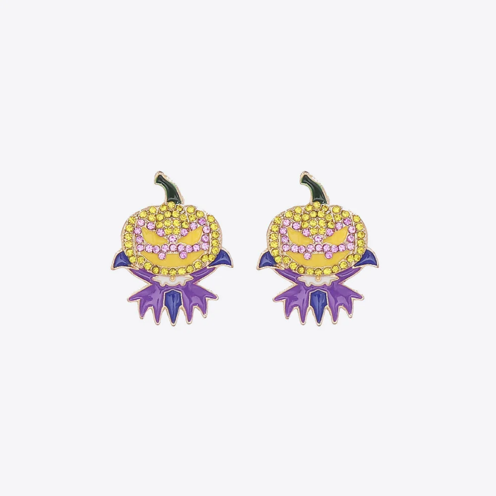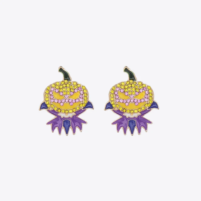 Add a touch of spooky charm to your Halloween outfit with these Rhinestone Pumpkin Earrings. Made from high-quality alloy and rhinestone, these imported earrings measure 1.6×1.25 inches. Remember to avoid wearing them during exercise to maintain their longevity and preserve their stunning appearance. Perfect for fall season or Halloween costume accessories.