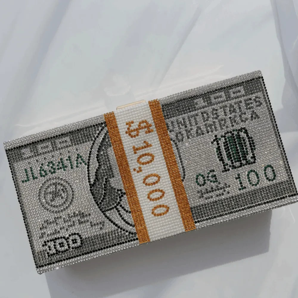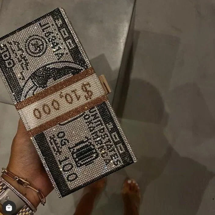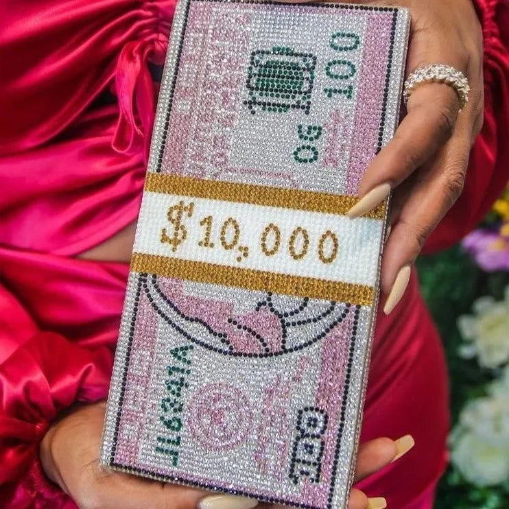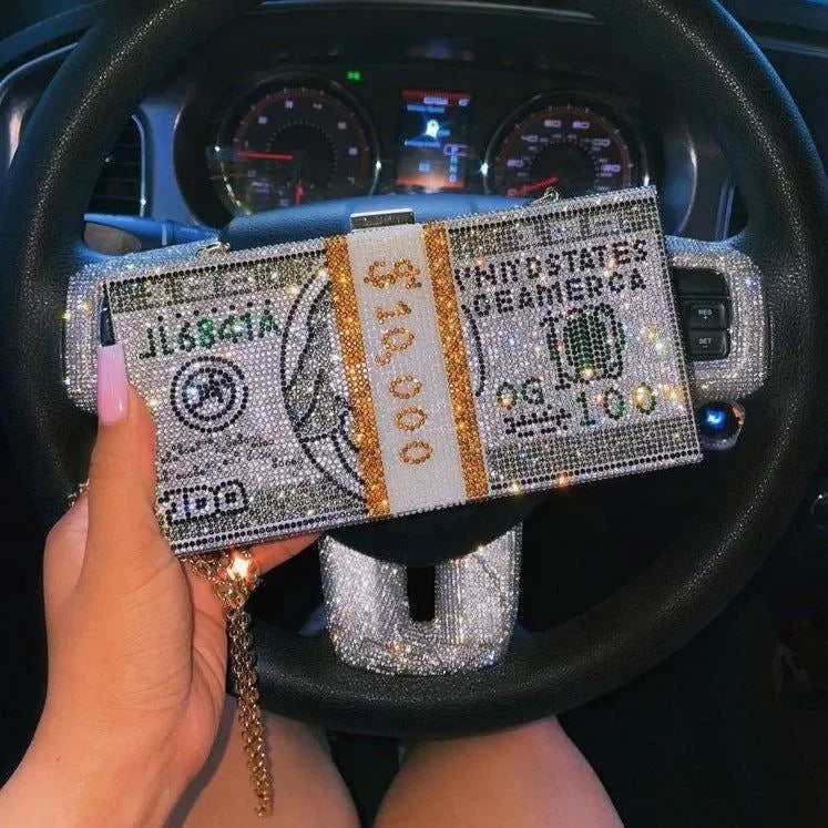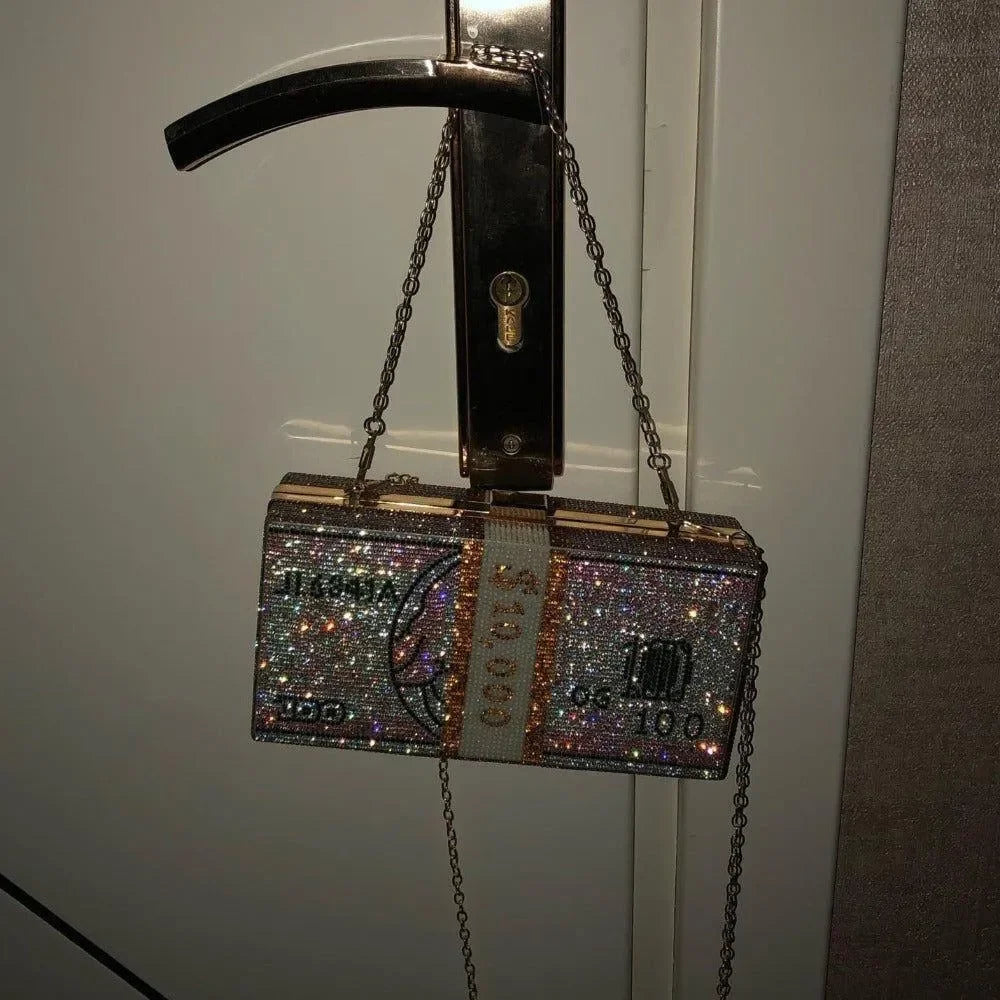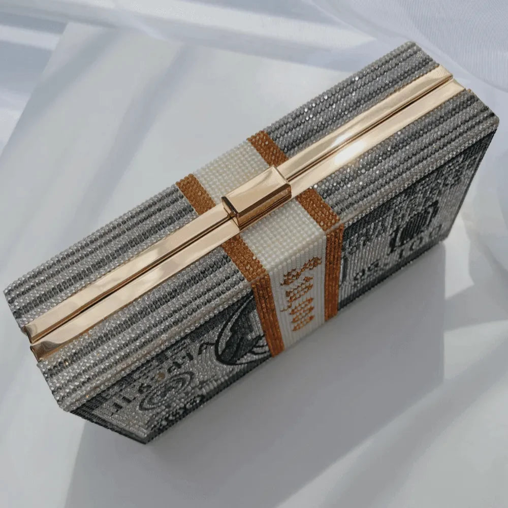 Elevate your evening look with our dazzling Rhinestone Sparkle Clutch in Pink or Gray. This exquisite clutch features a stunning rhinestone embellishment that adds a touch of glamour to any outfit. Its sleek design and secure clasp closure make it both stylish and practical for special occasions. Offering elegance and functionality, this clutch is a must-have to shine bright all night long. Explore more style inspiration and outfit ideas on our Instagram @mermaid_way. The rectangular clutch includes a chain link shoulder strap, money design details, and rhinestones, measuring approximately L*H*W: 20.5 x 10.5 x 6 cm (8 x 4 x 2.5 inches).