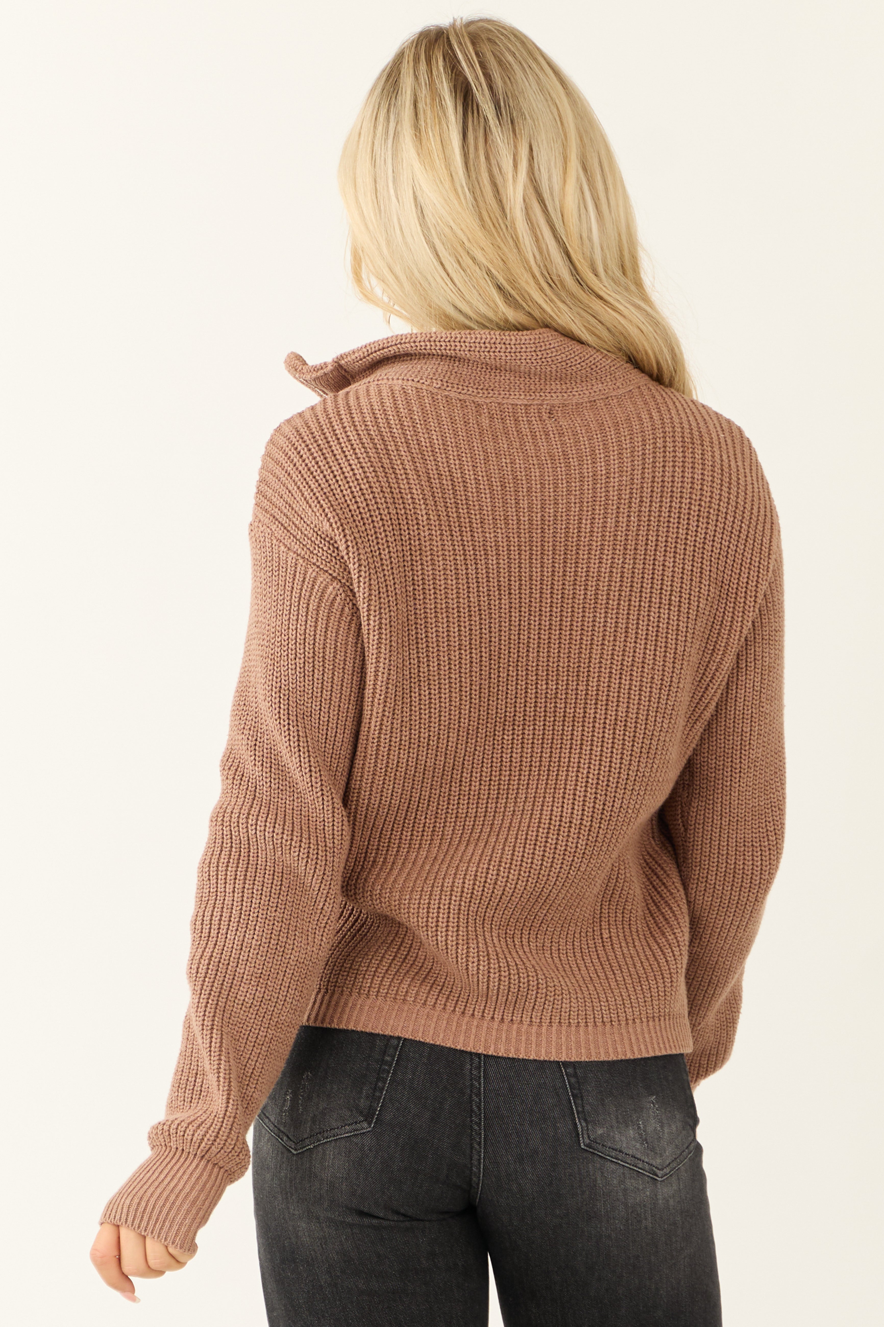 Stay stylish and snug in this ribbed knit zip-up jacket featuring a high mock neckline, ribbed banded trim, and semi-cropped length. The semi-stretchy fabric ensures a comfortable fit, making it perfect for everyday wear during fall and winter seasons. Hand wash cold and dry flat for easy care. Available in sizes S, M, L, and XL. Model is wearing a size Small. Ideal for layering and adding a touch of elegance to any ensemble.
