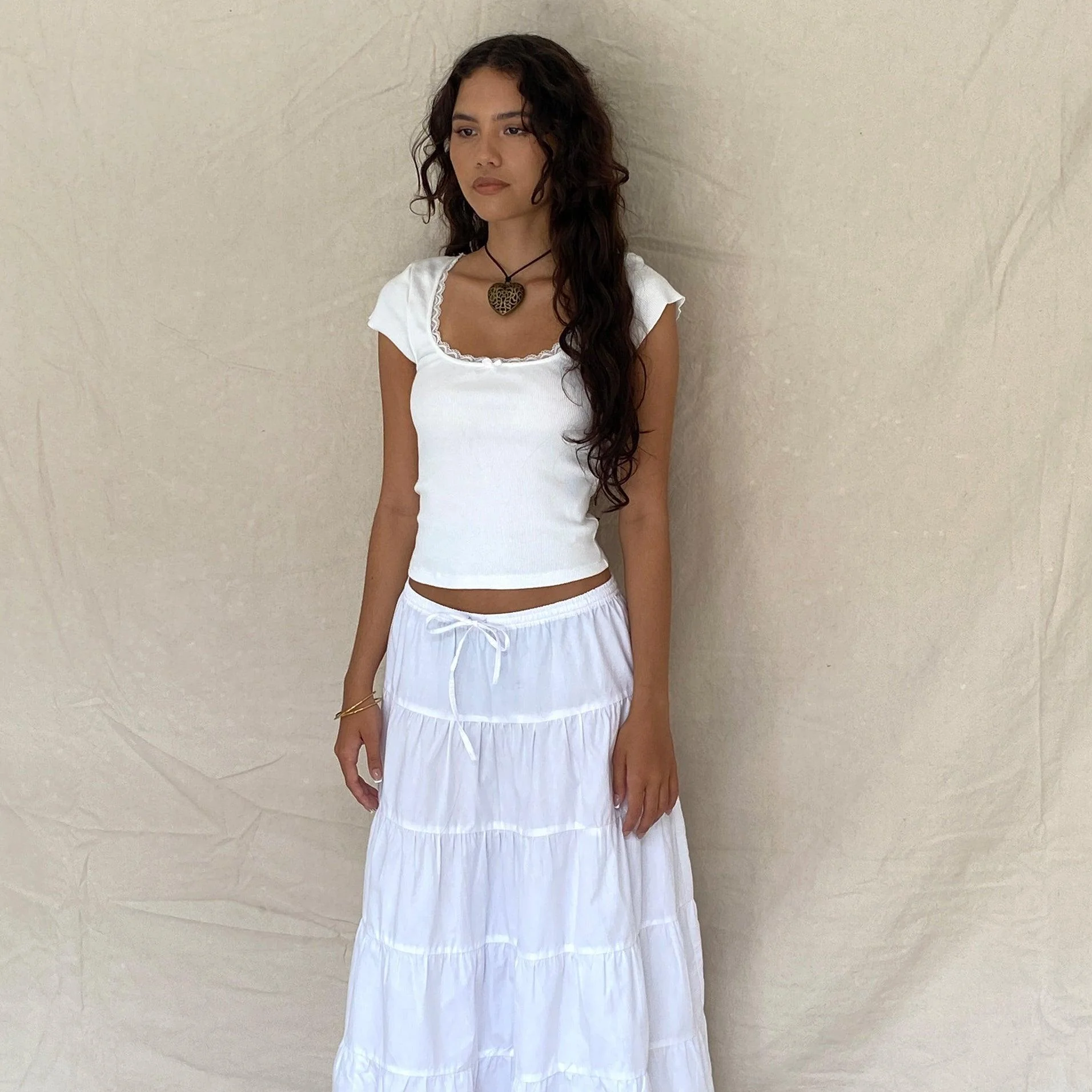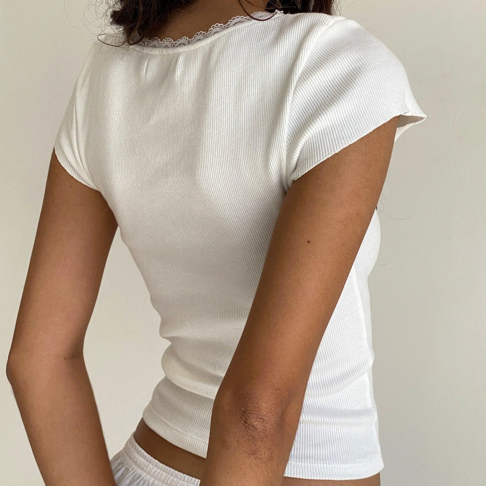 Elevate your wardrobe with our Ribbed Lace Trim Crop Top, an essential piece suitable for any occasion. This crop top features delicate lace accents along the neckline, exuding elegance and charm. Crafted from 95% cotton and 5% elastane, the ribbed fabric offers a comfortable and flattering fit with a chic texture. Its lightweight and breathable material make it perfect for layering or standalone wear. Seamlessly transition from day to night with this versatile crop top. Explore fashion inspiration and style tips on our Instagram @mermaid_way. Enjoy a complimentary exchange for size issues. Stay stylish with Mermaid Way!