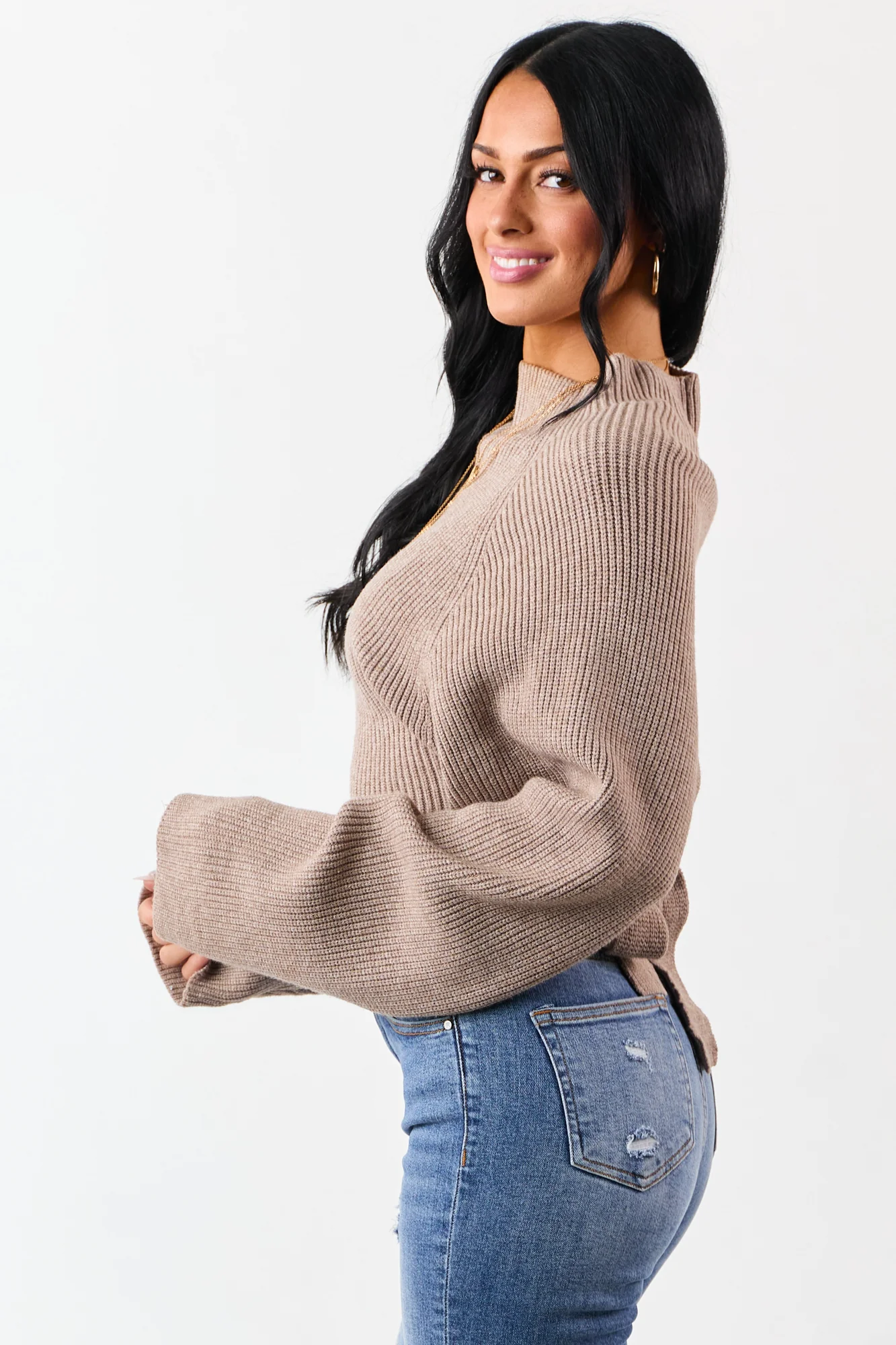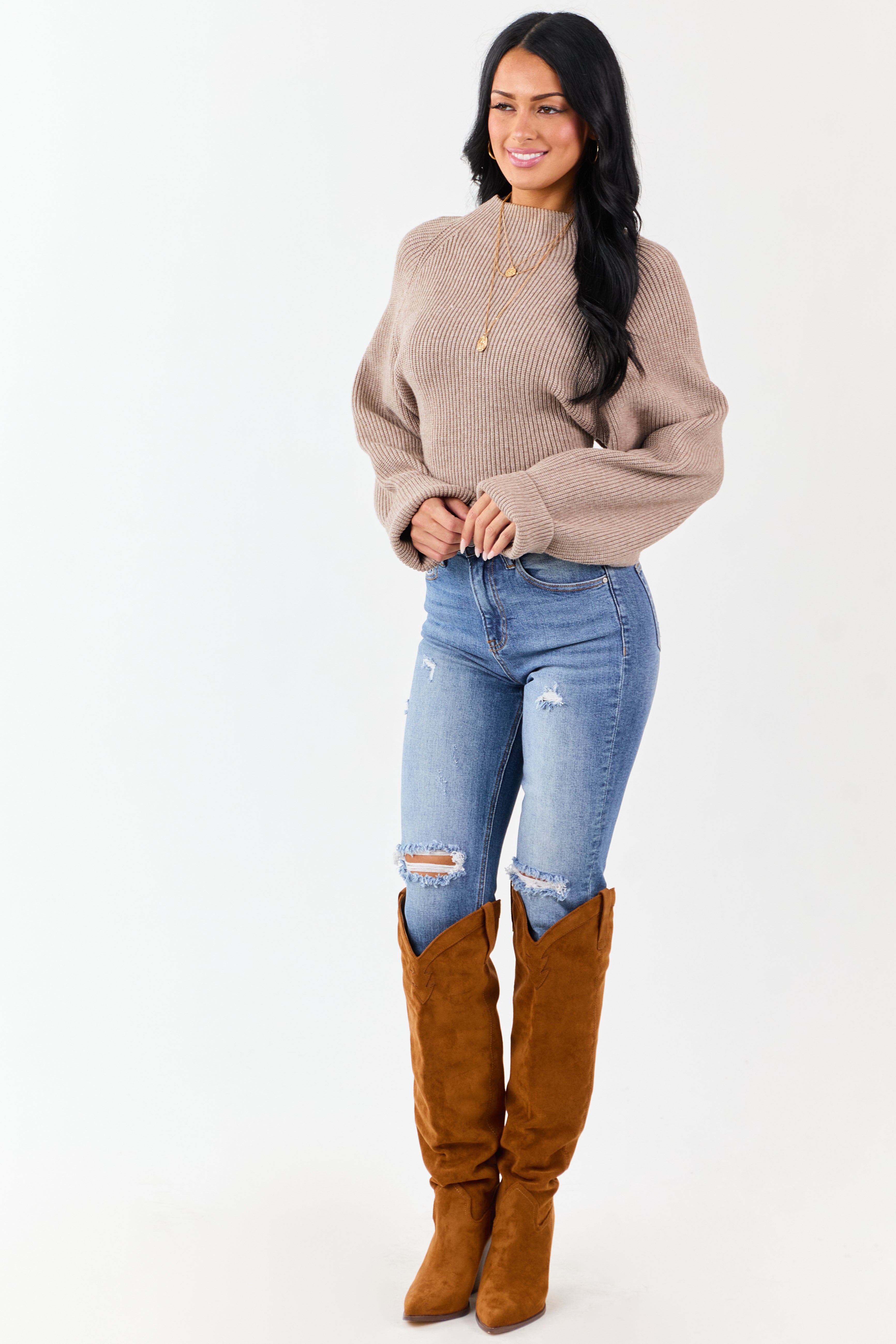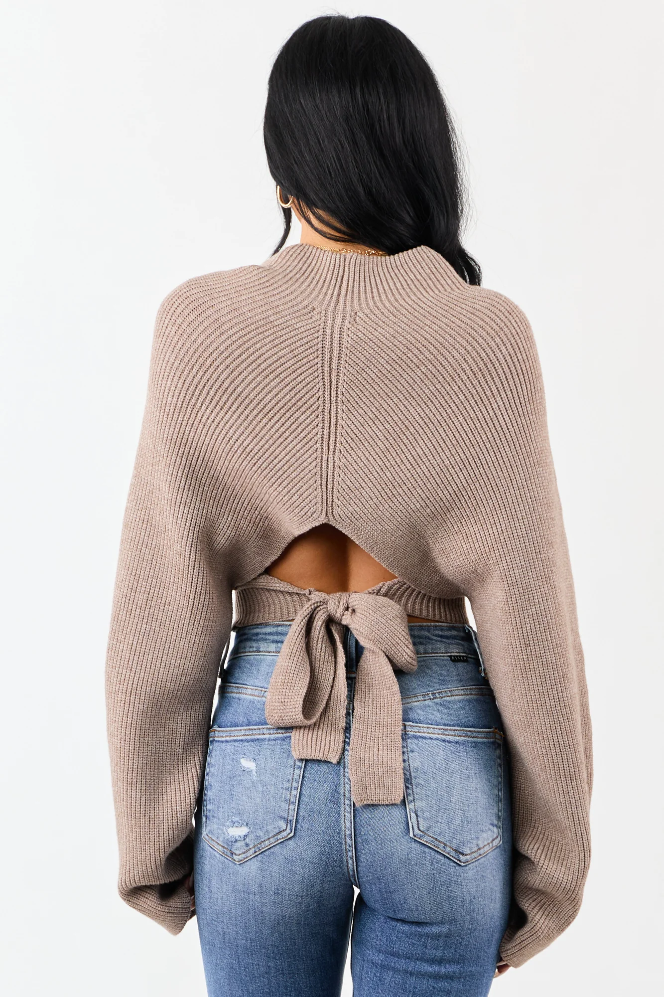 Stay trendy with our chic rib knit sweater featuring a mock neck and a flirty back cutout with tie closure. Made of 48% Viscose, 27% Polyester, and 25% Nylon for a comfortable fit. This versatile sweater is perfect for a modern look. Available in sizes S, M, and L. Bust: 36-40 inches. Length: 20-22 inches. Sleeve Length: 29 inches. Imported.