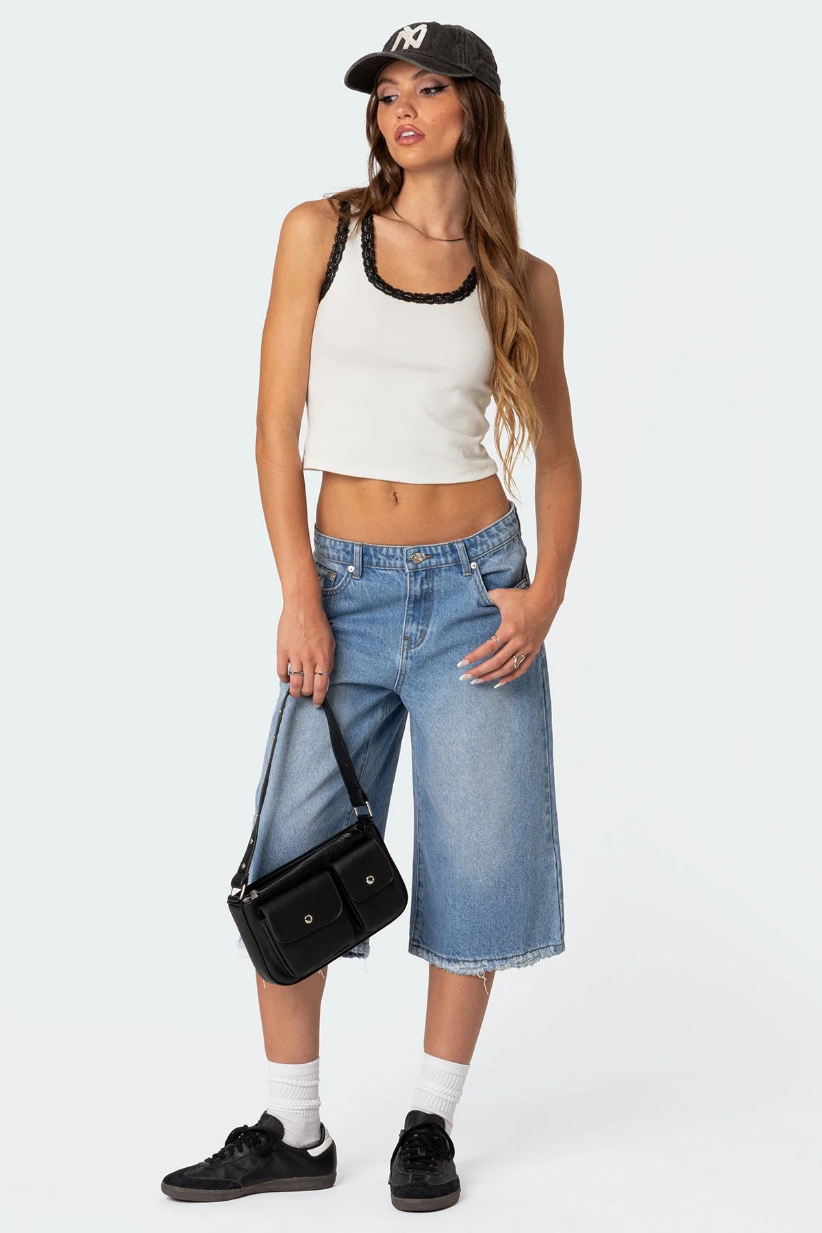 Experience comfort and style with our ribbed white tank top featuring elegant lace trim. Made from a blend of Cotton and Spandex, this versatile piece adds a touch of sophistication to your wardrobe. The model is 58 and wears a size S. For care, machine wash with similar colors.
