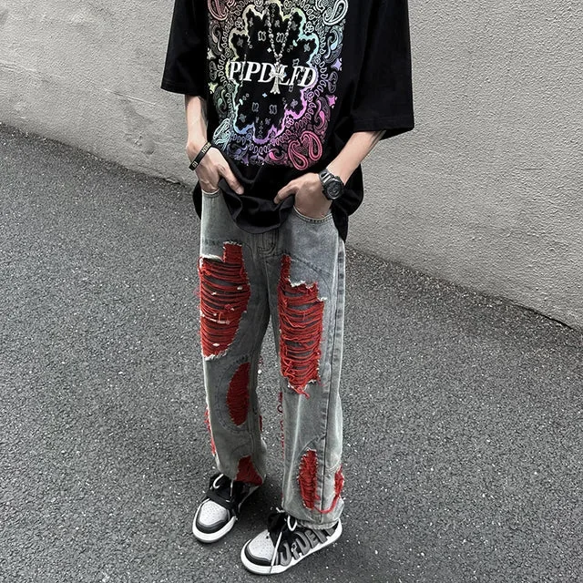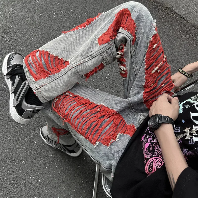 Discover our exclusive Limited Edition Mens Ripped Denim Jeans in vibrant red. Crafted from a premium cotton and denim blend, these high-quality jeans are bound to make a statement. The unique distressing adds a touch of fascination to your look. With a size range to 4XL, find your perfect fit and turn heads wherever you go. Embrace the ultimate in style and comfort. Dont miss out on the opportunity to add these fashion essentials to your wardrobe! Size Chart available for accurate measurements.