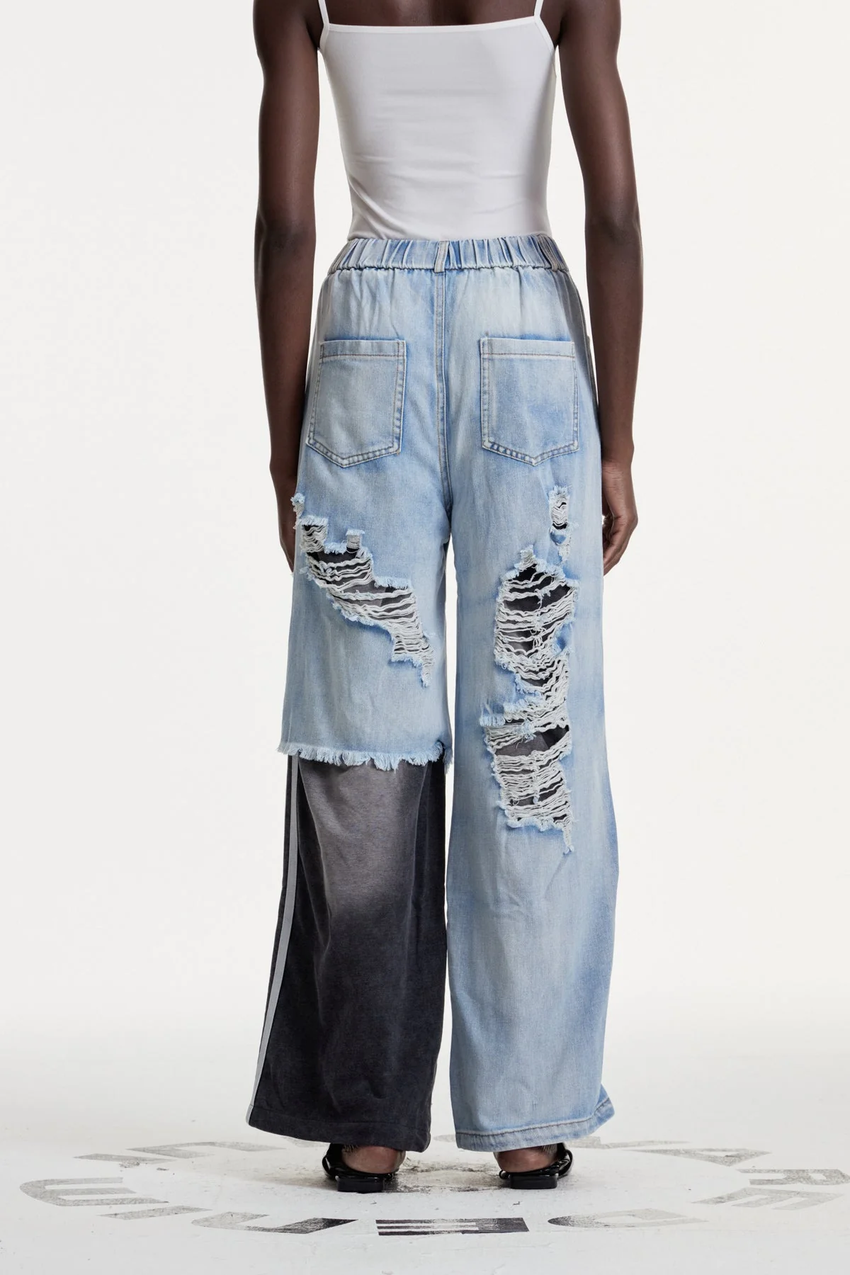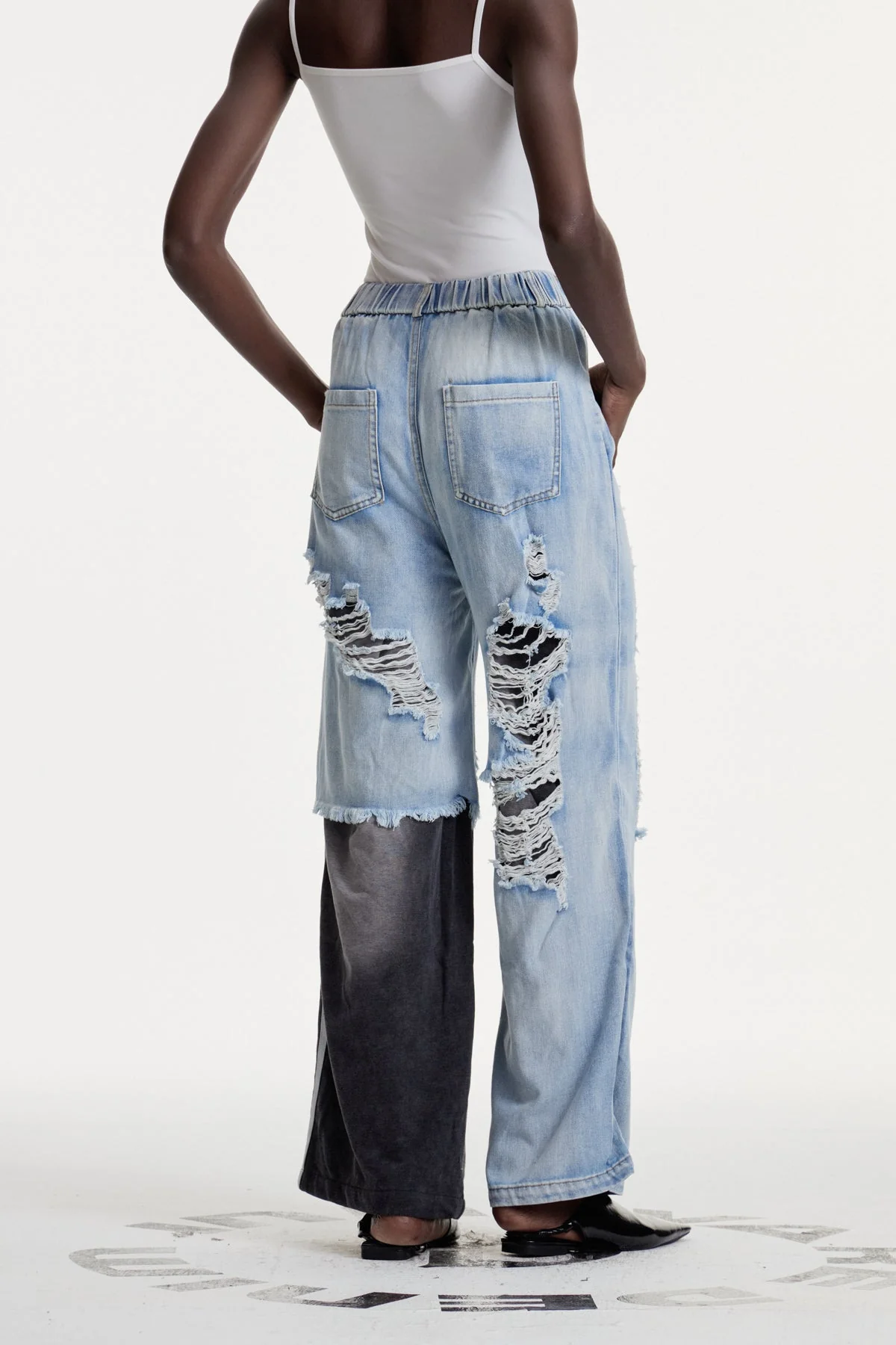 Discover the modern blend of edgy design and comfort with our Ripped Stripe Denim Jeans. Expertly tailored with distressed accents and bold stripes, these jeans offer durability and style for a fashion-forward statement. The non-stretch material ensures a comfortable fit that complements your every move, making them ideal for those seeking contemporary denim with a unique twist. Explore the ideal combination of urban edge and refined aesthetics in every wear. Color may vary due to image lighting. Gentle machine wash recommended for easy care.