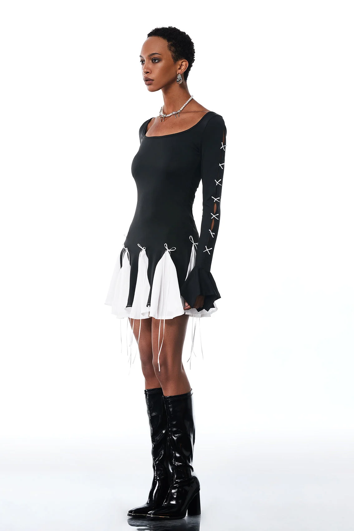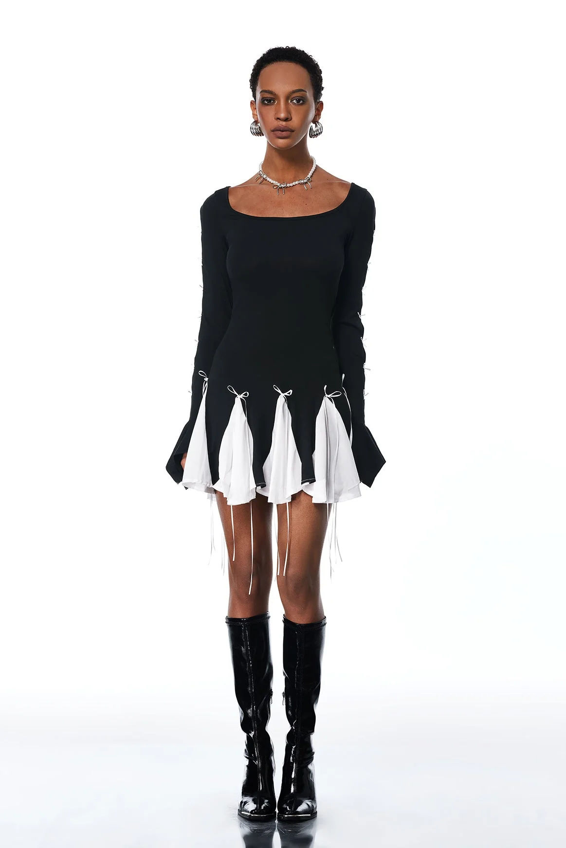 Elevate your wardrobe with this romantic black bow mini dress featuring delicate ruffle fringe accents. Perfect for any occasion, this stylish dress boasts a flattering mini length and is made from high-quality materials for comfort. The versatile design is suitable for both casual outings and special events. Material: 50% Polyester, 50% Cotton. Care: Gentle machine wash. Please note, color may vary due to lighting. Add this charming piece to your collection today!