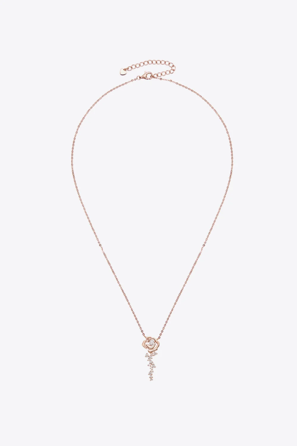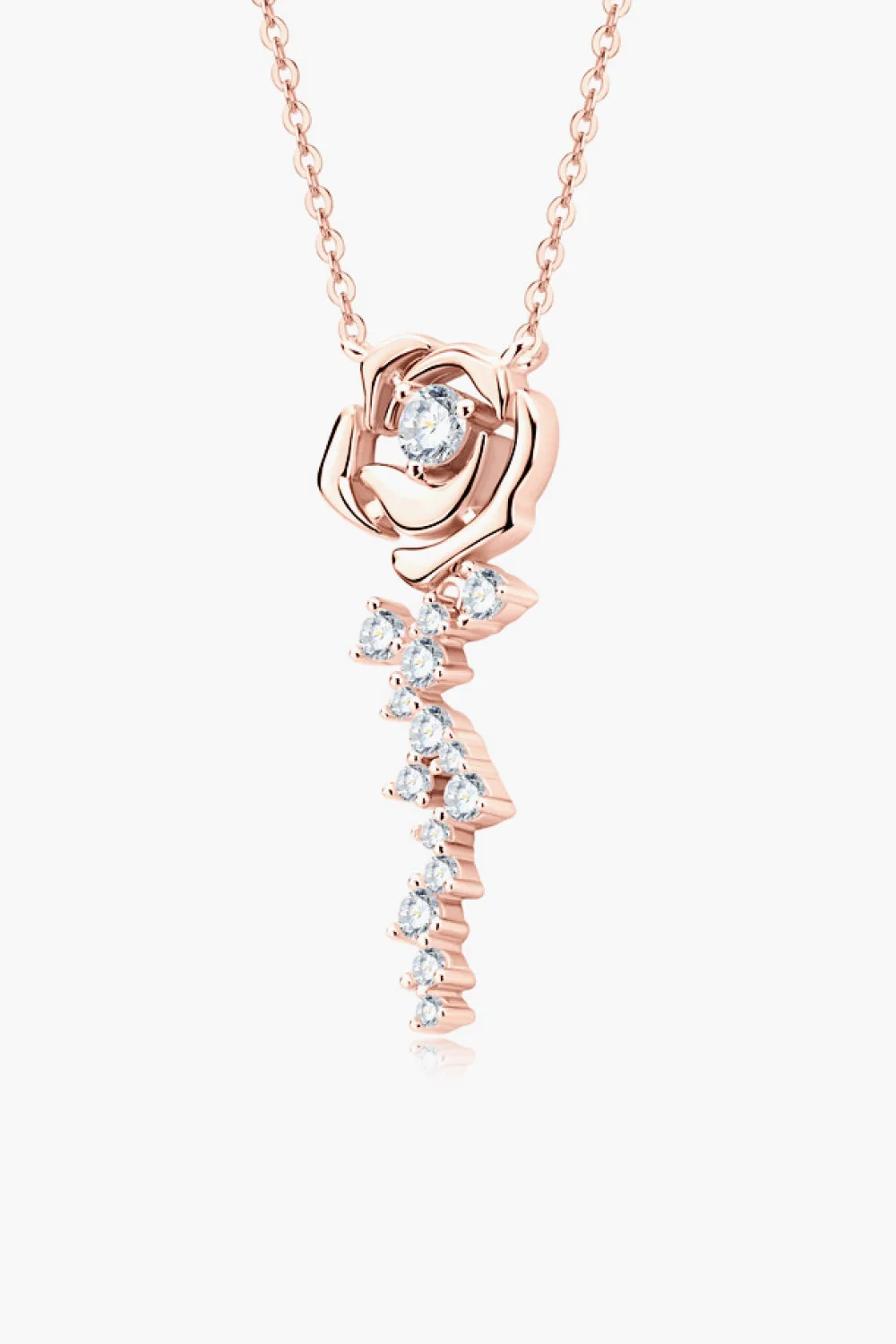 Enhance your style with this modern flower pendant necklace crafted from 925 Sterling Silver and adorned with a brilliant 18K rose gold plating. Carefully polished for a luxurious shine, this necklace features a 0.56-carat Moissanite stone. Avoid sweating during exercise to preserve its beauty. Imported and includes a matching box. This stunning piece measures 18 inches in chain length with a 1.2-inch pendant diameter and weighs only 0.1 oz (3g).