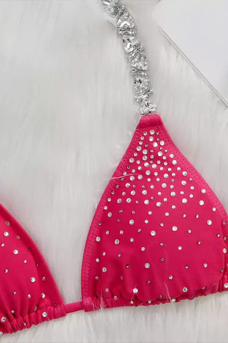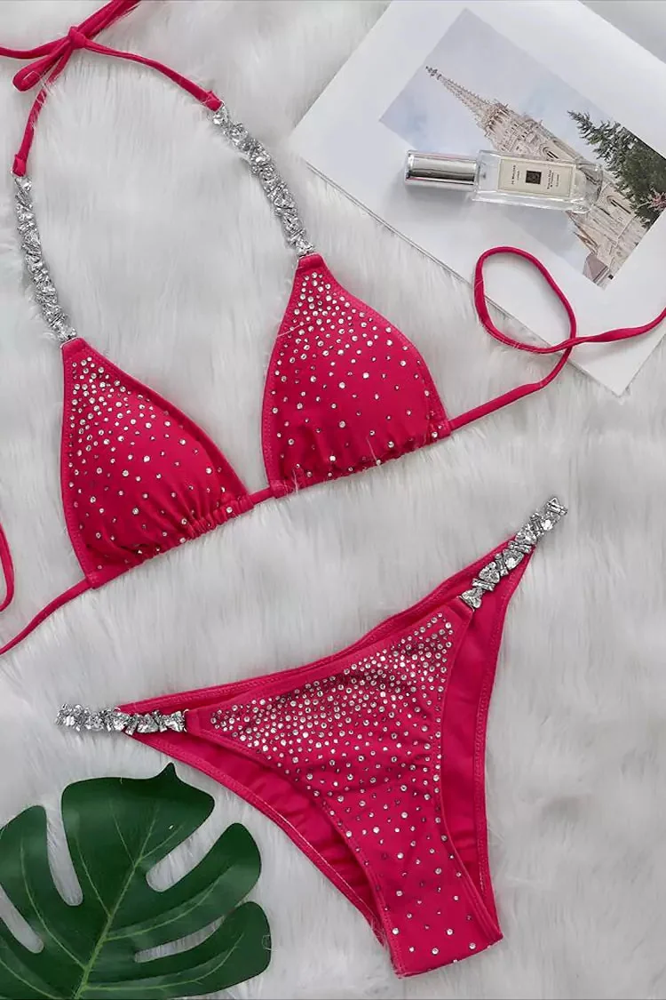 Indulge in the glistening allure of our Rose Red Diamante Bikini with lace-up adjustable shoulder straps and tie-back detail. Crafted from stretch fabric adorned with sparkling diamantes, this stunning swimwear accentuates your curves effortlessly. Perfect for beach outings or rooftop pool parties. Made of 80% nylon and 20% polyester fiber, offering a slight stretch for a comfortable fit. Machine washable for easy care. Ensure a perfect fit by consulting our size chart. Embrace elegance and style with the Rose Red Diamante Bikini from Night Novas.
