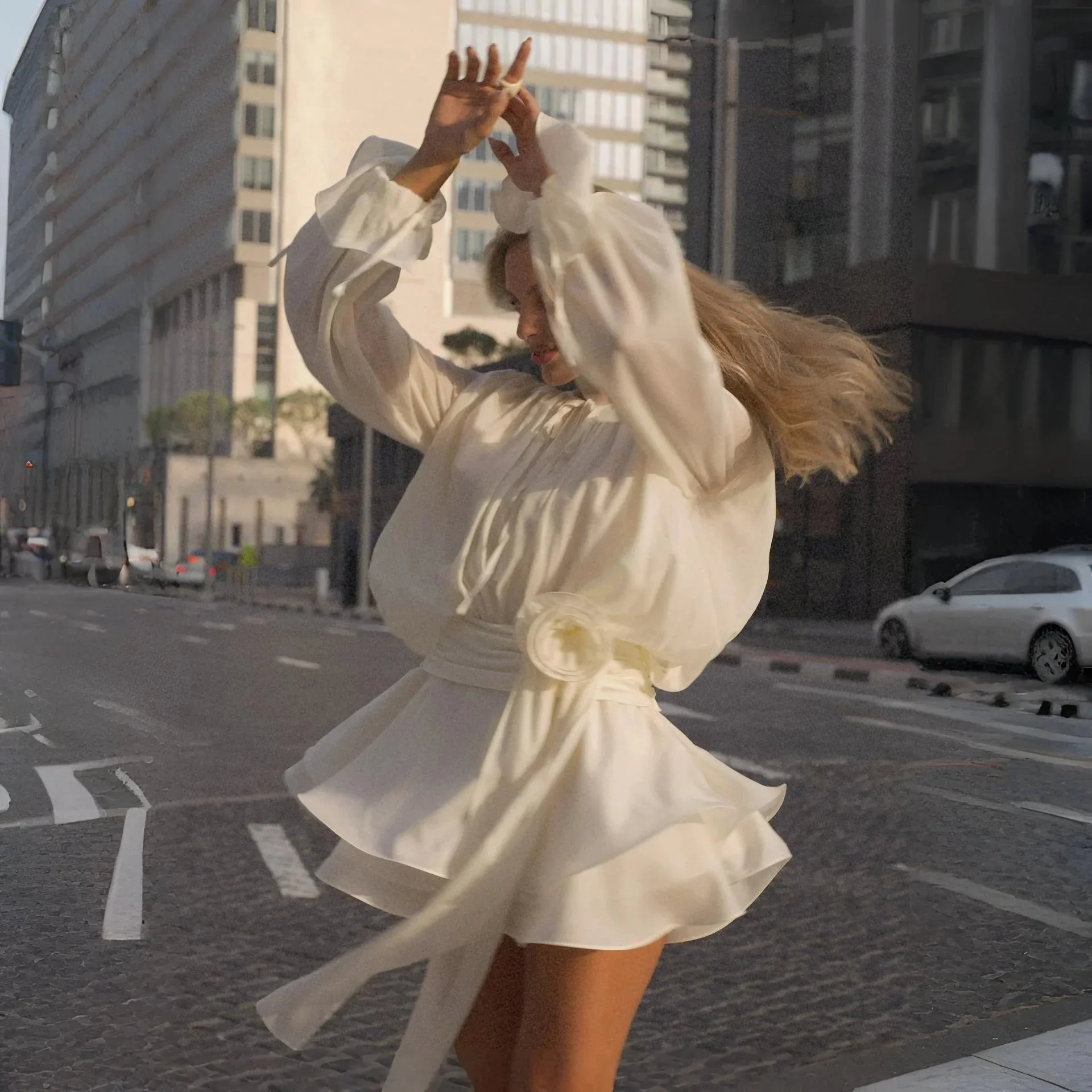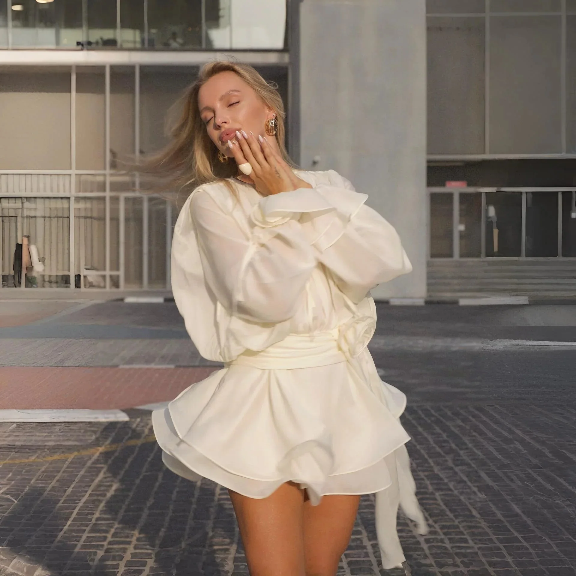 Indulge in modern romance with our enchanting ruffled mini dress. Radiating feminine charm with soft pink/white hues, this lightweight, airy piece boasts a relaxed silhouette, billowy sleeves, and a cinched waist for a whimsical touch. Complete with a dramatic rosette sash, subtle keyhole neckline, and flowy design, its ideal for daytime events or chic city strolls, exuding a dreamy allure fit for the modern muse. Discover fresh outfit ideas on Instagram @mermaidway. Enjoy a complimentary size exchange if needed.