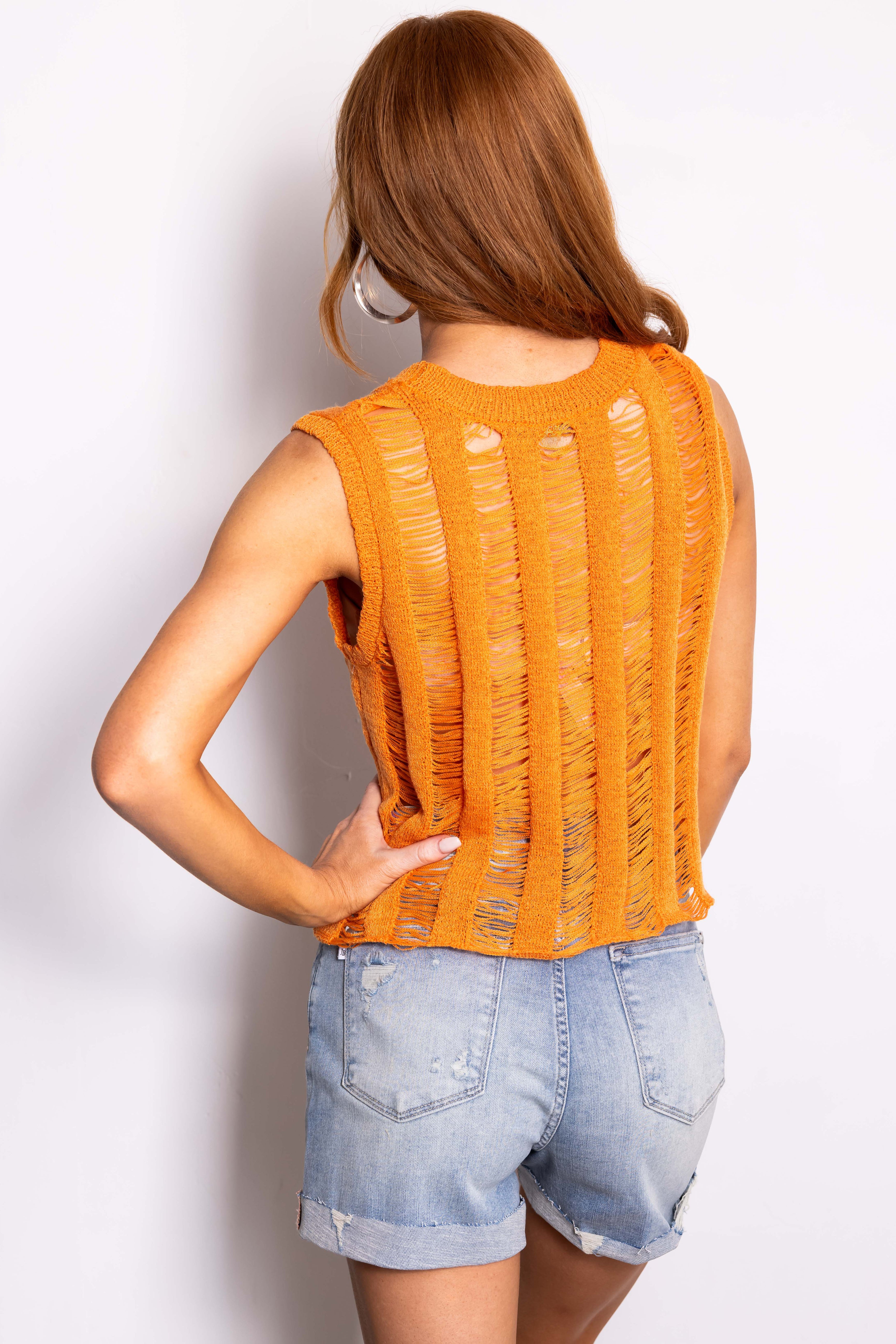 Experience effortless style and comfort with our Rust Knit Sleeveless Tank Top. Available in sizes S, M, L, and XL, this stretchy knit top features a rounded neckline, banded ribbed details on the neckline and cuffs, and comes unlined for a lightweight feel. Made of 100% Polyester, it offers a snug fit with dimensions ranging : 3″ to Bust: 40″ and Length: 18″ to 21″. Perfect for daytime wear, this tank top is suitable for machine washing and gentle ironing. Embrace a chic look with this versatile piece. Model is wearing a size Small.