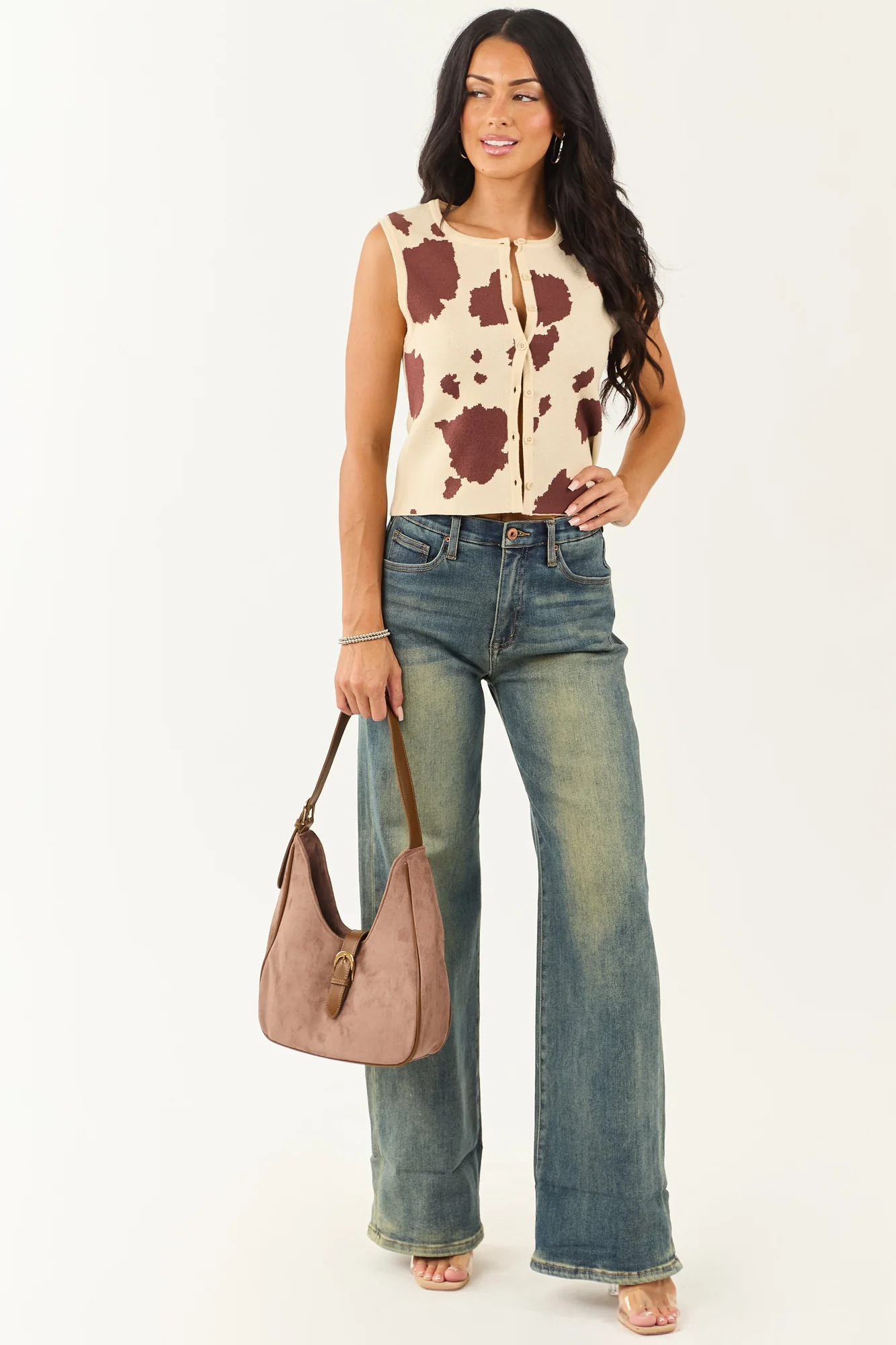 Embrace your wild side with our Sand Animal Print Sweater Tank Top, a rodeo-ready piece in soft knit featuring a stretchy ribbed design in shades of Sand and Chocolate. Experience comfort and style with this versatile top suitable for any occasion. Available in XS, S, M, and L sizes with bust measurements ranging from 29″ to 35″ and lengths from 18.5″ to 20″. The straps vary from 3.25″ to 4″. Made of 30% Acrylic, 29% Polyester, 21% Rayon, 20% Nylon. Imported. Note: Each piece may vary slightly due to the cutting and sewing process, ensuring a unique touch to every garment. Model shown is wearing a size Small. Model’s Profile: Size 1, Height 59″, Bust 34″, Waist 26″.