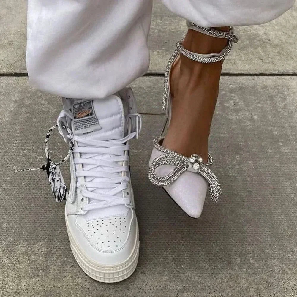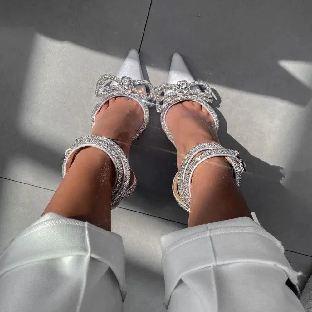 Step into elegance with our Satin Double Bow Crystal Embellished Heels. Featuring luxurious satin and sparkling crystals, these pink shoes add sophistication and charm to any special occasion outfit. Crafted for style and comfort, these heels with a diamante bow detail and stiletto heel ensure you stand out at weddings or evenings out. Discover more style inspiration on our Instagram. Complimentary size exchange available.