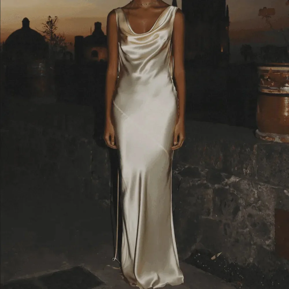 Make a striking entrance with the Satin Plunging Neckline Cowl Back Maxi Dress. Crafted from luxurious satin fabric, this dress features a deep plunging neckline and a dramatic cowl back, exuding sophistication and style. Ideal for formal events or a night out, it highlights your best features and flows effortlessly with every step. Versatile for various occasions, this dress is a bold statement piece for your wardrobe. Explore more styles on Instagram @mermaid_way. Elevate your fashion game with this stunning dress that fits true to size. Experience a complimentary exchange for a better fit if needed.