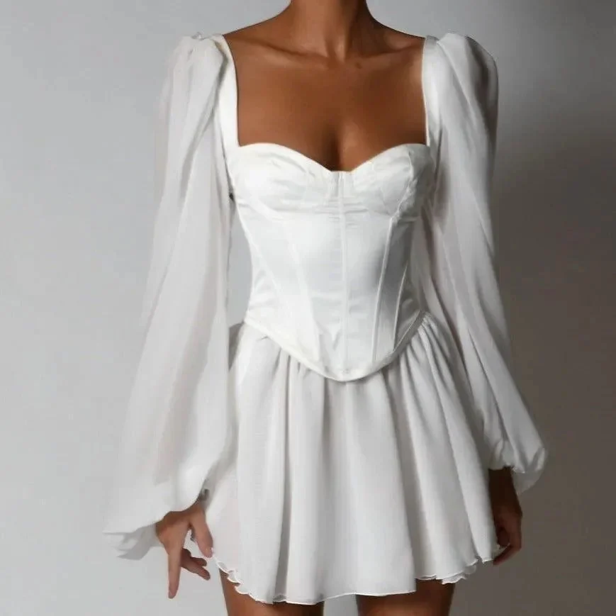 Elevate your style with our Satin Sweetheart Corset Mini Dress featuring adjustable corset details and puff sleeves for a romantic flair. Crafted from luxurious satin fabric, this dress exudes glamour and sophistication. Perfect for special occasions, it guarantees youll shine in any crowd. The comfortable yet chic design makes it a wardrobe essential. Make a statement with this exquisite piece and light up the night like a star!
