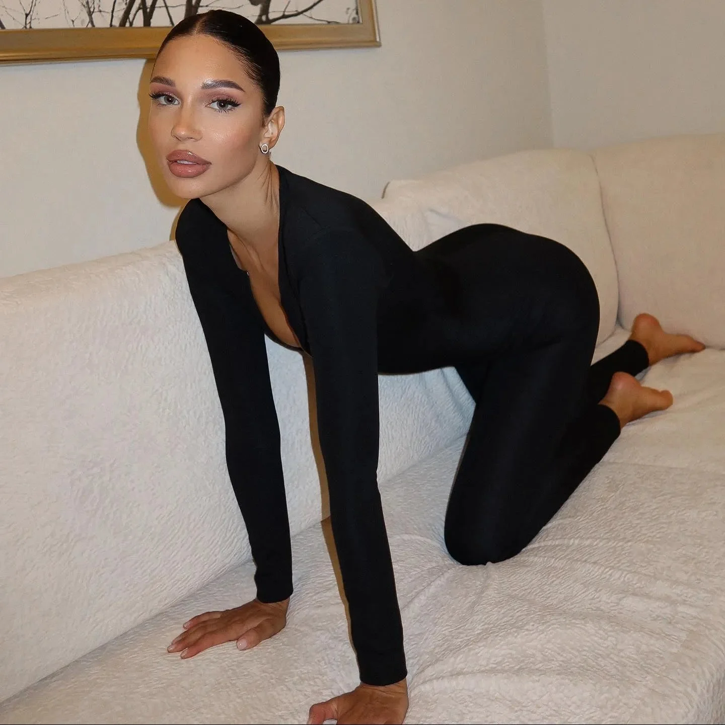 Discover the ultimate blend of edgy and sleek with our long sleeve jumpsuit. This jumpsuit is designed for a sculpted fit that effortlessly highlights your silhouette. Made from stretchy fabric for a comfortable yet stylish look. Whether youre stepping out for the day or evening, this form-fitting jumpsuit brings confidence and sophistication to any outfit. Explore more style tips on our Instagram @mermaid_way. Enjoy a complimentary exchange if the fit isnt perfect!