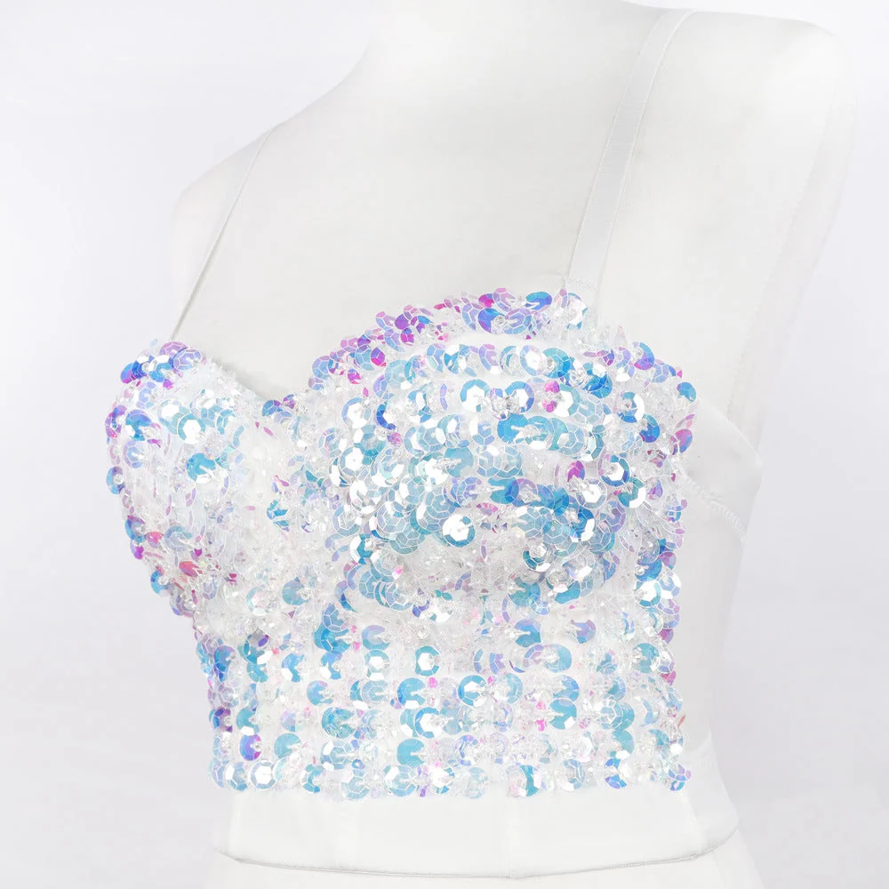 Add a touch of glamour to your wardrobe with our Sequin Embellished Crop Top! Shine bright in any setting with its eye-catching sequin design that reflects your sparkling personality. Perfect for creating standout outfits and turning heads wherever you go. Embrace your inner diva and showcase your style with confidence in this stunning Sequin Crop Top.