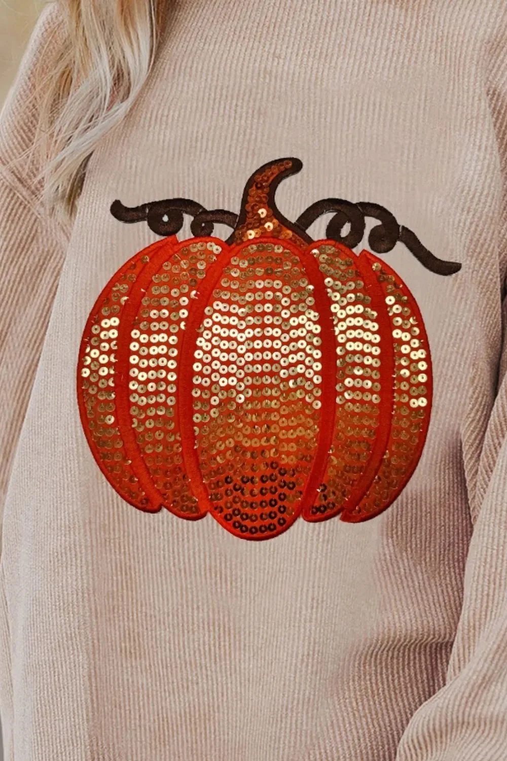 Wrap yourself in style with this Sequin Pumpkin Round Neck Long Sleeve Sweatshirt perfect for the fall season. Made of 100% polyester, this sweatshirt features exquisite sequin details for added flair. Machine washable for easy care. Available in various sizes to fit your unique measurements. Elevate your wardrobe with this trendy piece!