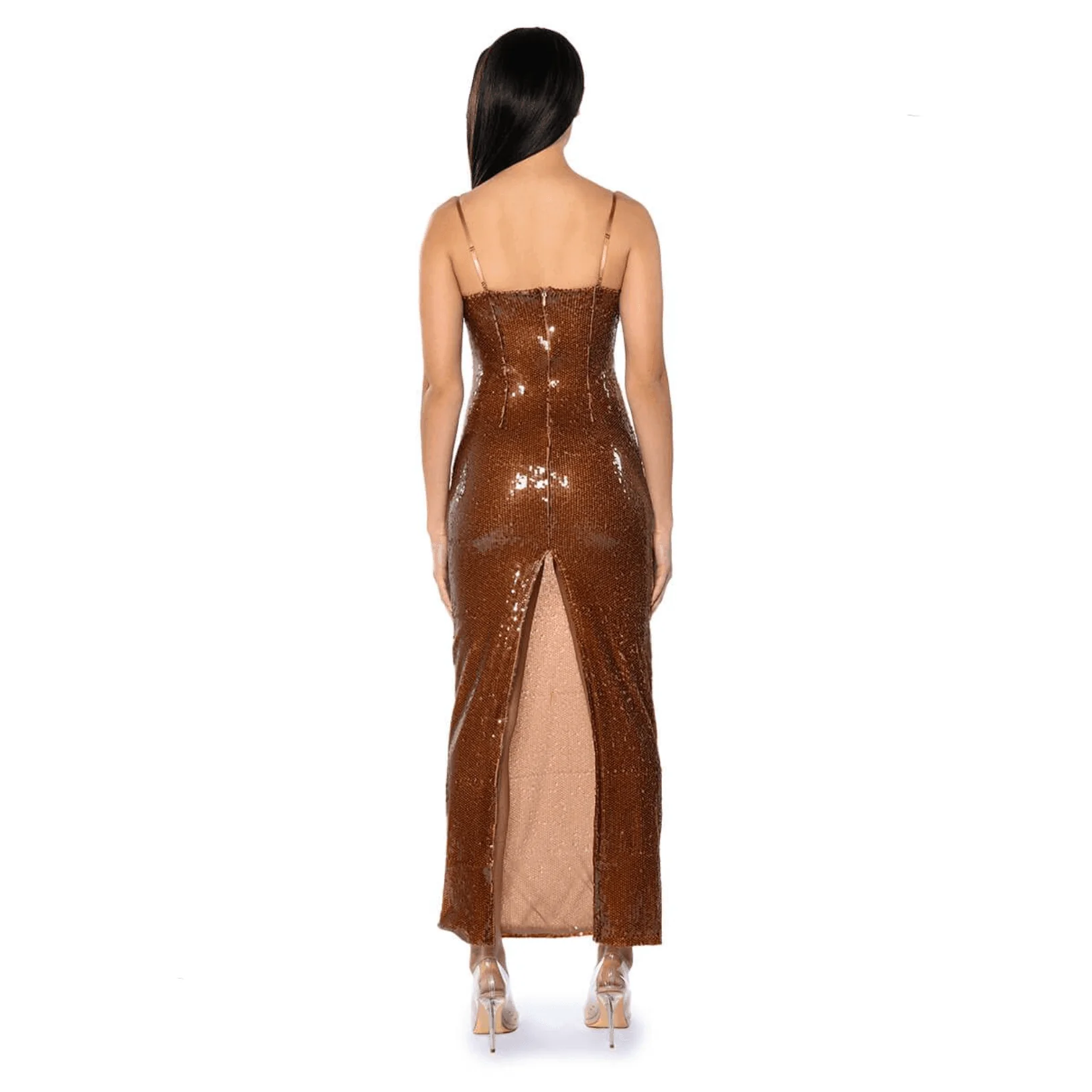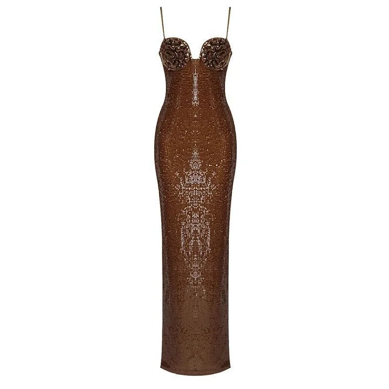 Elevate your style with our Sequined Maxi Dress in a luxurious brown sugar hue. This dazzling dress features shimmering sequins that catch the light beautifully. Perfect for any special occasion or a night out, the dress offers a glamorous look with its fitted bodice and flowing skirt. Crafted with attention to detail, it provides a flattering silhouette while ensuring comfort throughout the evening. The combination of elegance and sparkle makes this dress a must-have. Shine bright and make a statement with this show-stopping Sequined Maxi Dress, and enjoy compliments wherever you go. If your size is off, we provide a complimentary exchange for a better fit. Explore more style ideas on our Instagram @mermaid_way.
