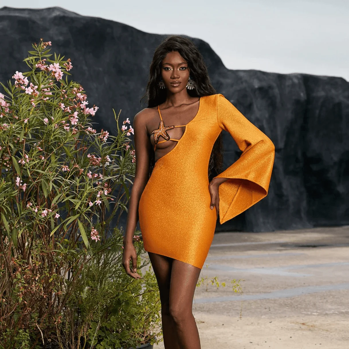 Elevate your style with our Sequined Starfish Mini Dress, ideal for dazzling at any event. This stunning dress features a body-hugging fit, elegant flare sleeves, and an all-over sequin design, ensuring you stand out beautifully. Crafted from high-stretch bandage material (95% Polyester, 5% Spandex), this dress combines glamour and comfort effortlessly. Perfect for special occasions, this wardrobe essential will make you look chic at cocktail parties or summer gatherings. Shine brightly at your next event and create unforgettable memories with this fabulous dress. For more style inspiration, follow us on Instagram @mermaid_way. Dry clean only. Free size exchange available if needed.