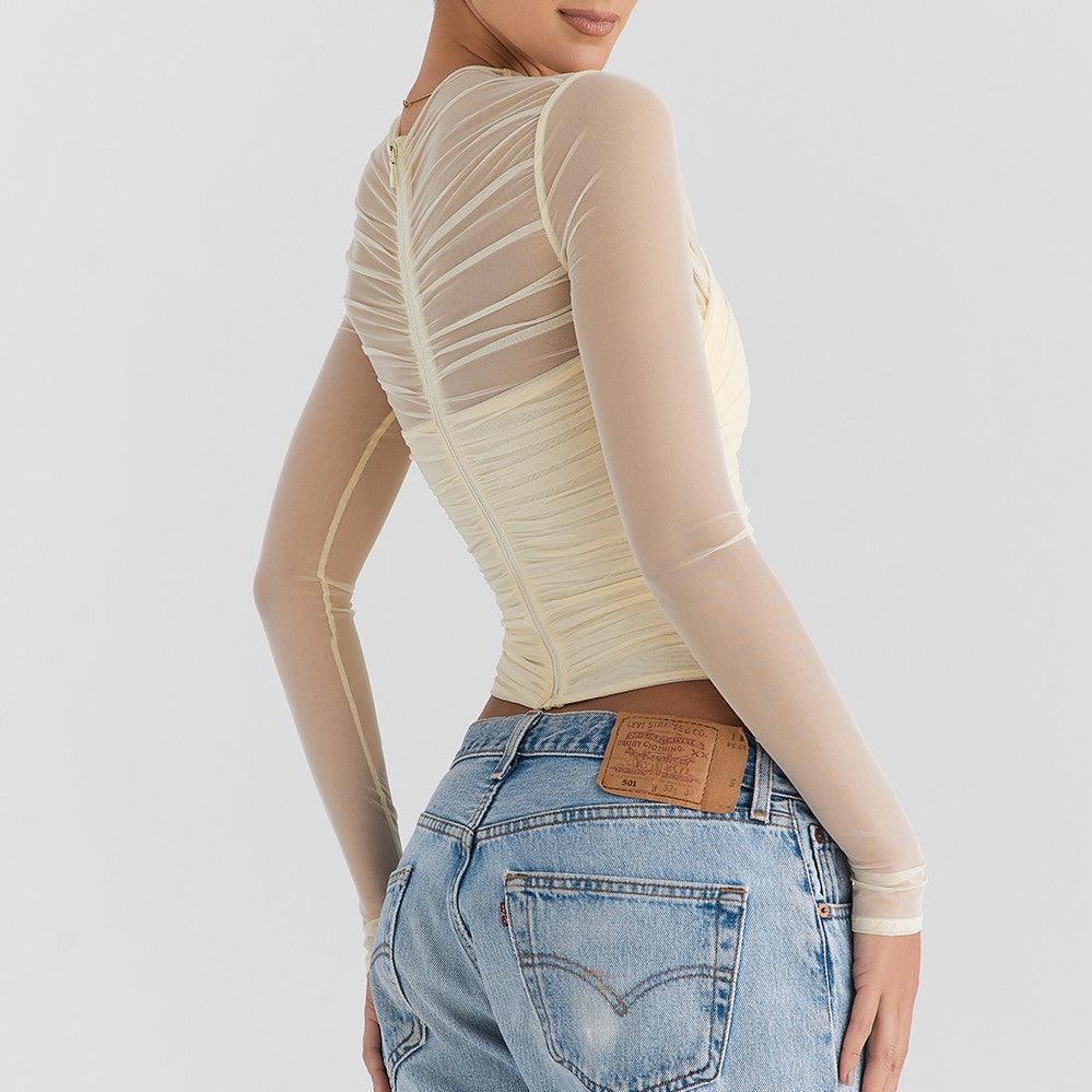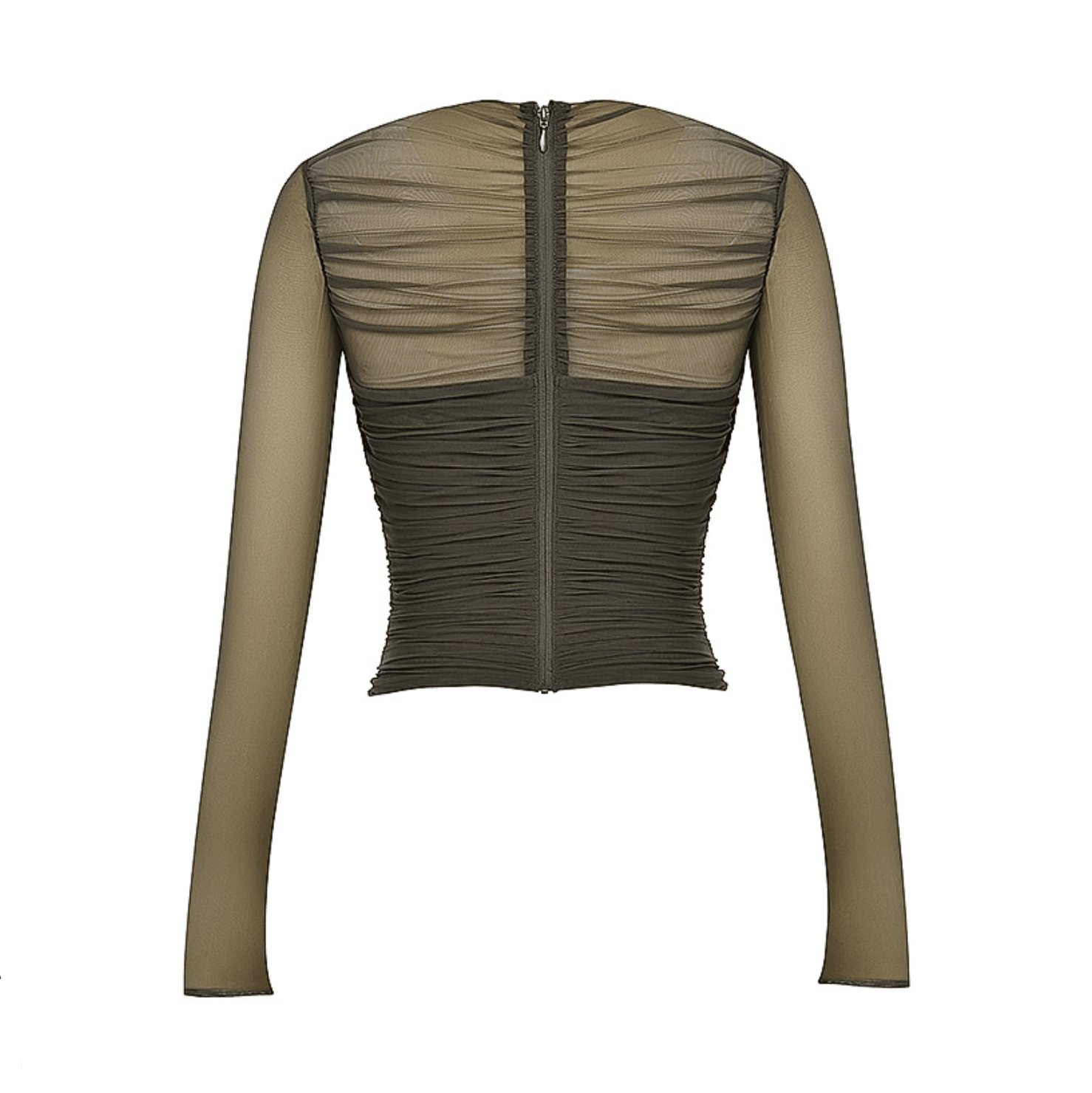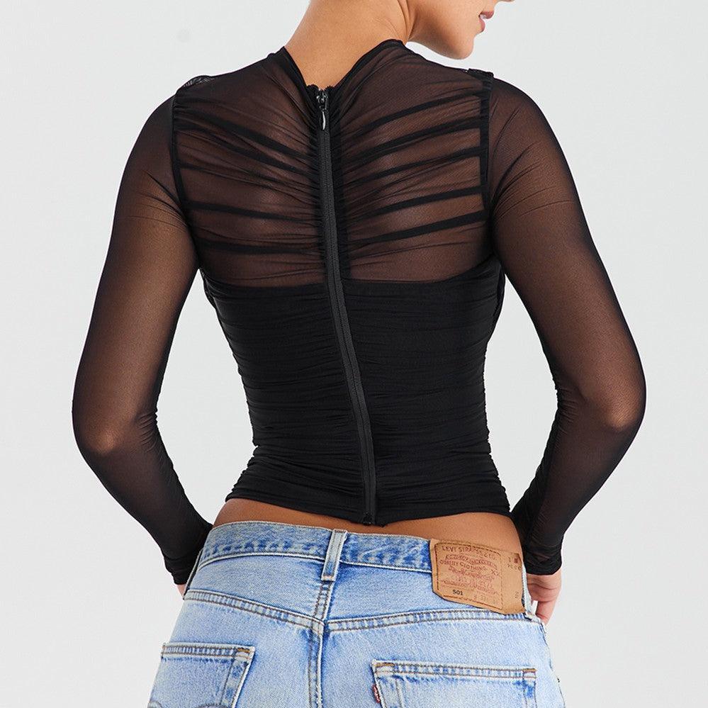 Discover sophistication with our Sheer Mesh Crop Top featuring long sleeves. Crafted from light, sheer fabric, this chic top offers a slim fit for layering or stand-alone wear. Versatile for all seasons, elevate your style effortlessly with its modern, elegant design. Perfect for a night out or office look. Shop now and embrace timeless elegance. FREE size exchange available.